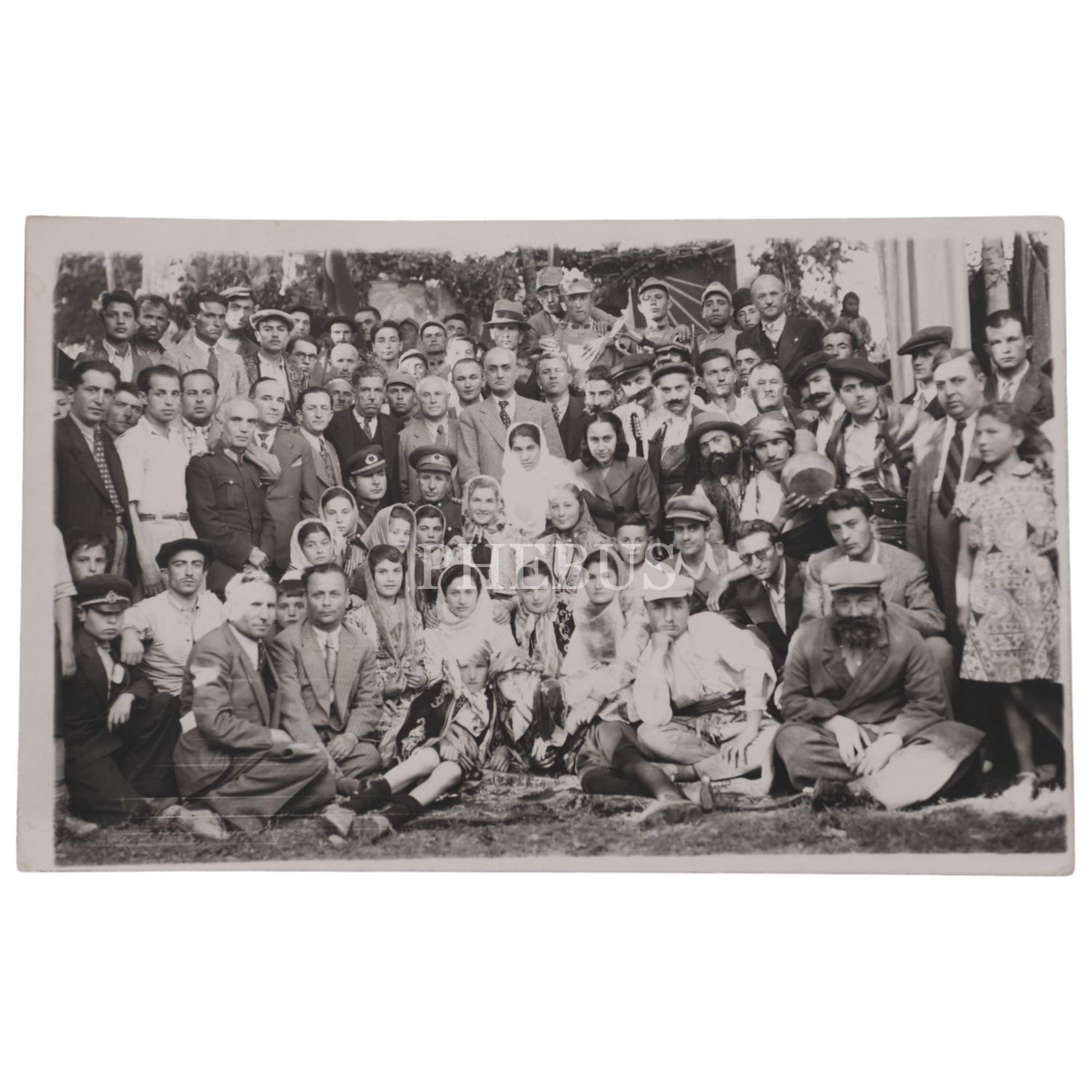Erken Cumhuriyet döneminde, bir müsamere sonrasında hatıra fotoğrafı çektiren halk ve asker, 14x9 cm...