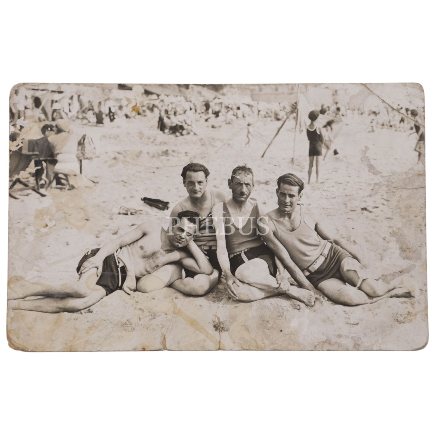 Plajda poz veren bir arkadaş grubu, 14x9 cm...