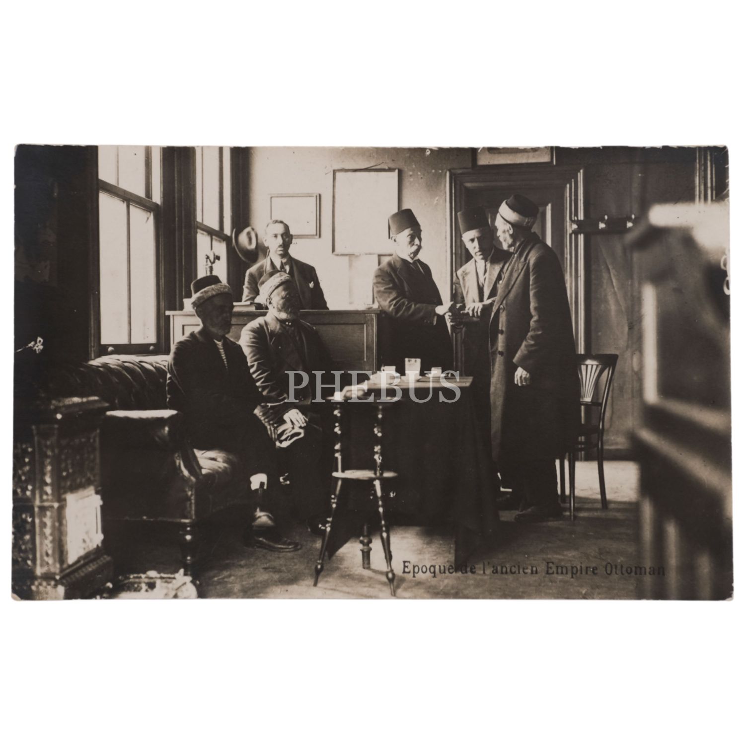Osmanlı döneminden bir yazıhanenin içi, "Epoque de l´ancien Empire Ottoman", "fotoğraf: W. Sender, Konstantinopel", 14x9 cm...