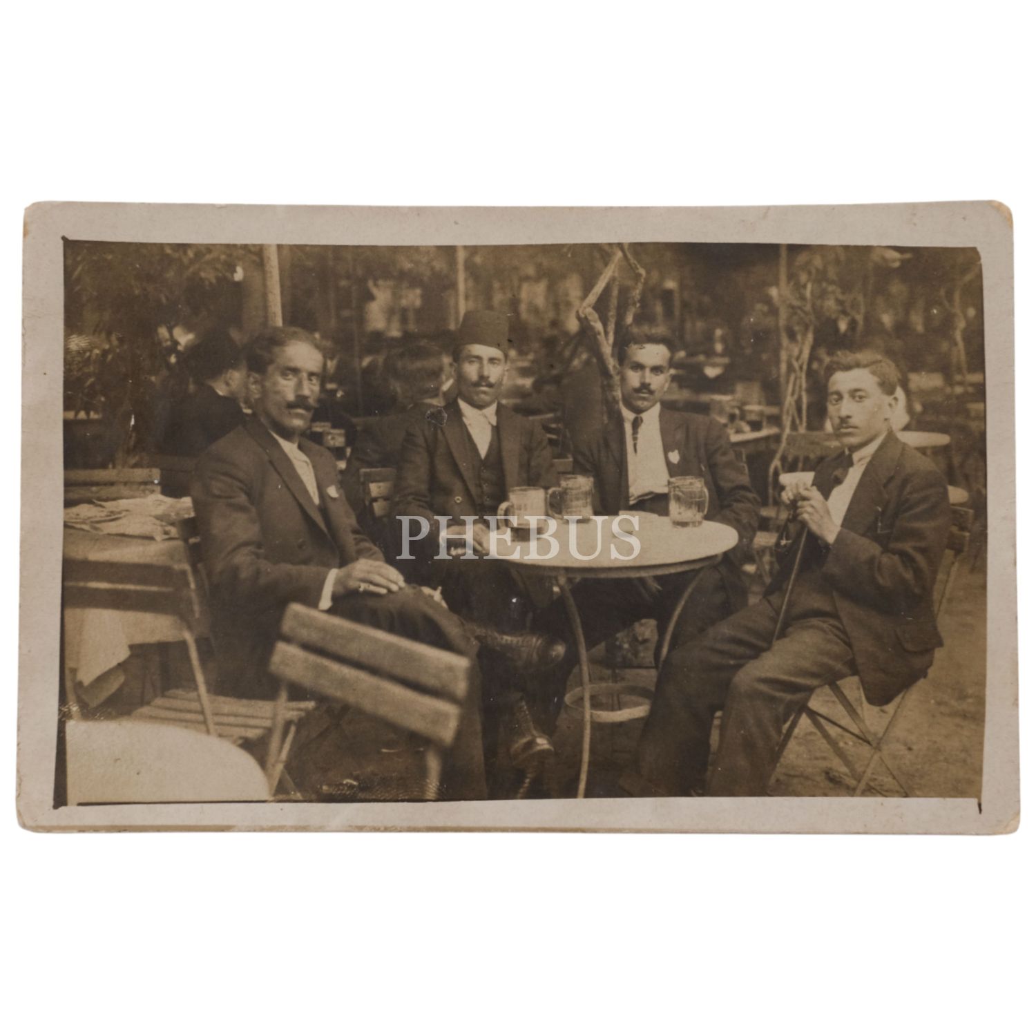 Osmanlı döneminden, bir birahanede oturan beyefendiler, 14x10 cm...