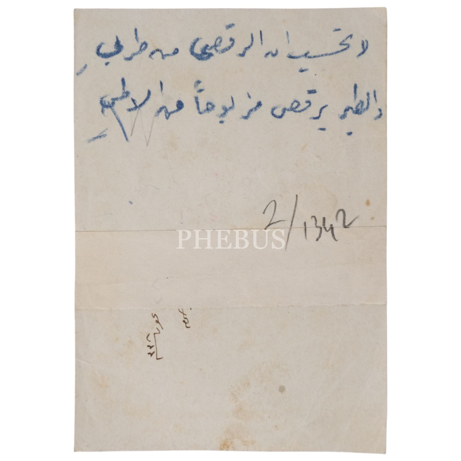 Fotoğrafın arkasında Arapça bir açıklama kaleme alınmıştır.