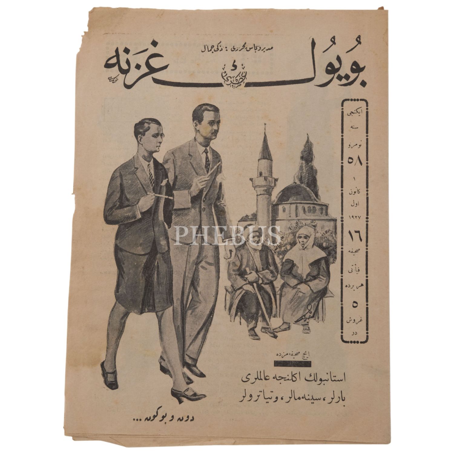 "İstanbul´un eğlence alemleri" manşetli, 1 Kanunuevvel 1927 tarihli BÜYÜK GAZETE ´nin 85. sayısı, 24x33 cm...