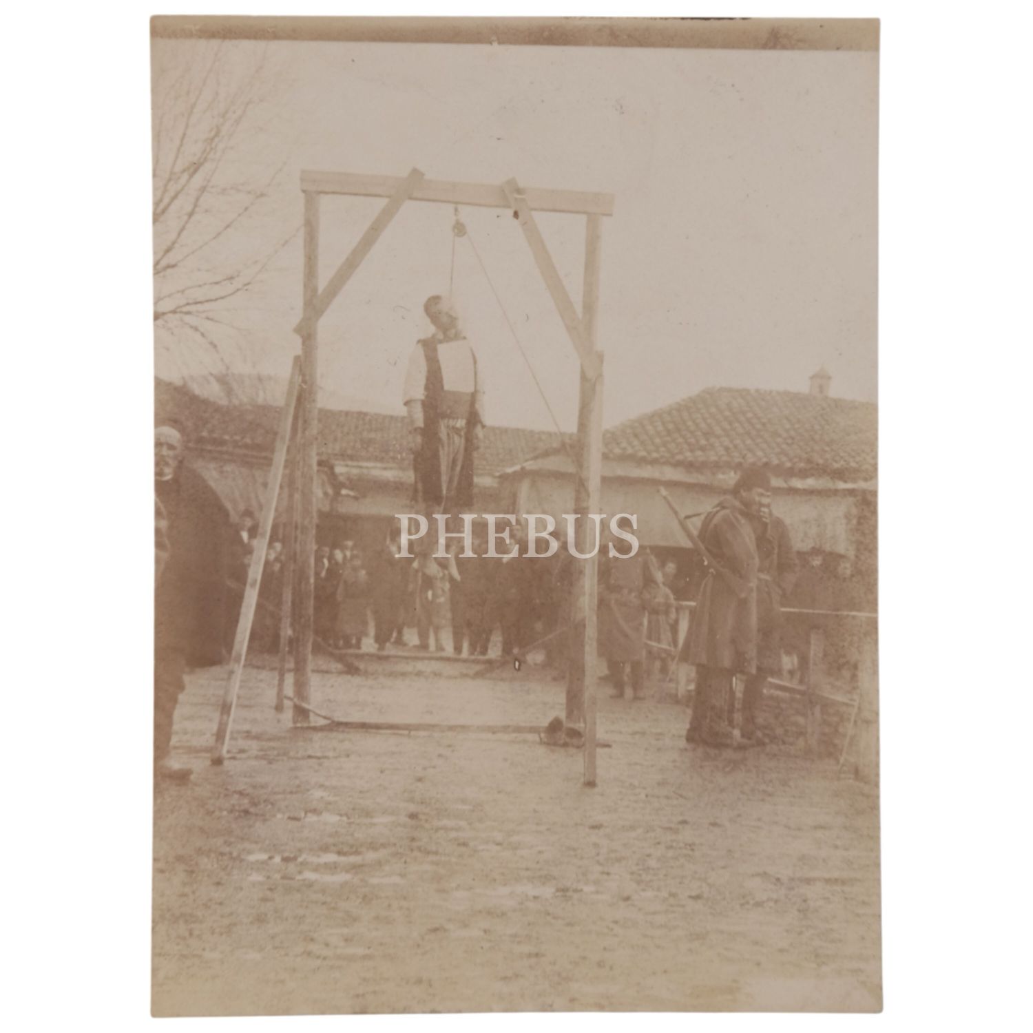 Osmanlı döneminden, dar ağacındaki bir idam mahkumunun fotoğrafı, 7x9 cm...