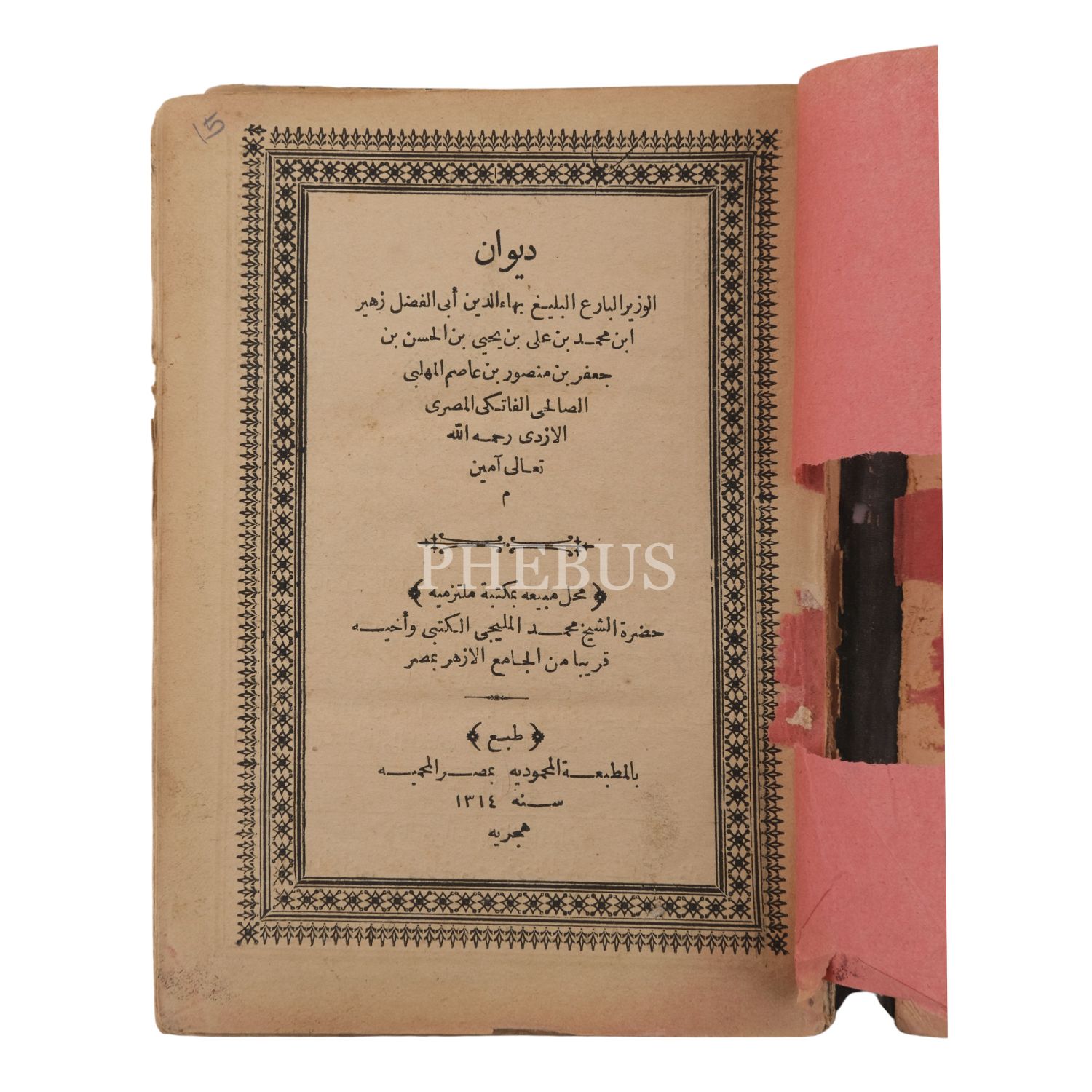 DÎVÂN-I BAHÂEDDİN, Vezir Bahaeddin,1314, Matbaatü´l-Mahmûdiye, Mısır, 143 sayfa, 14x19 cm...