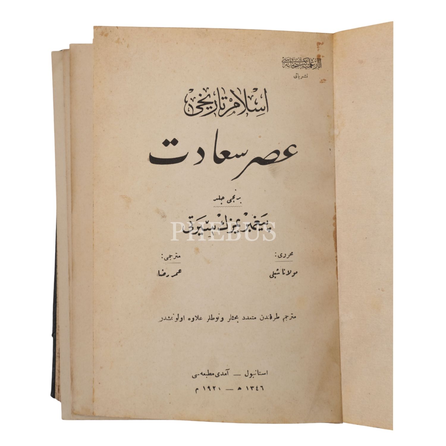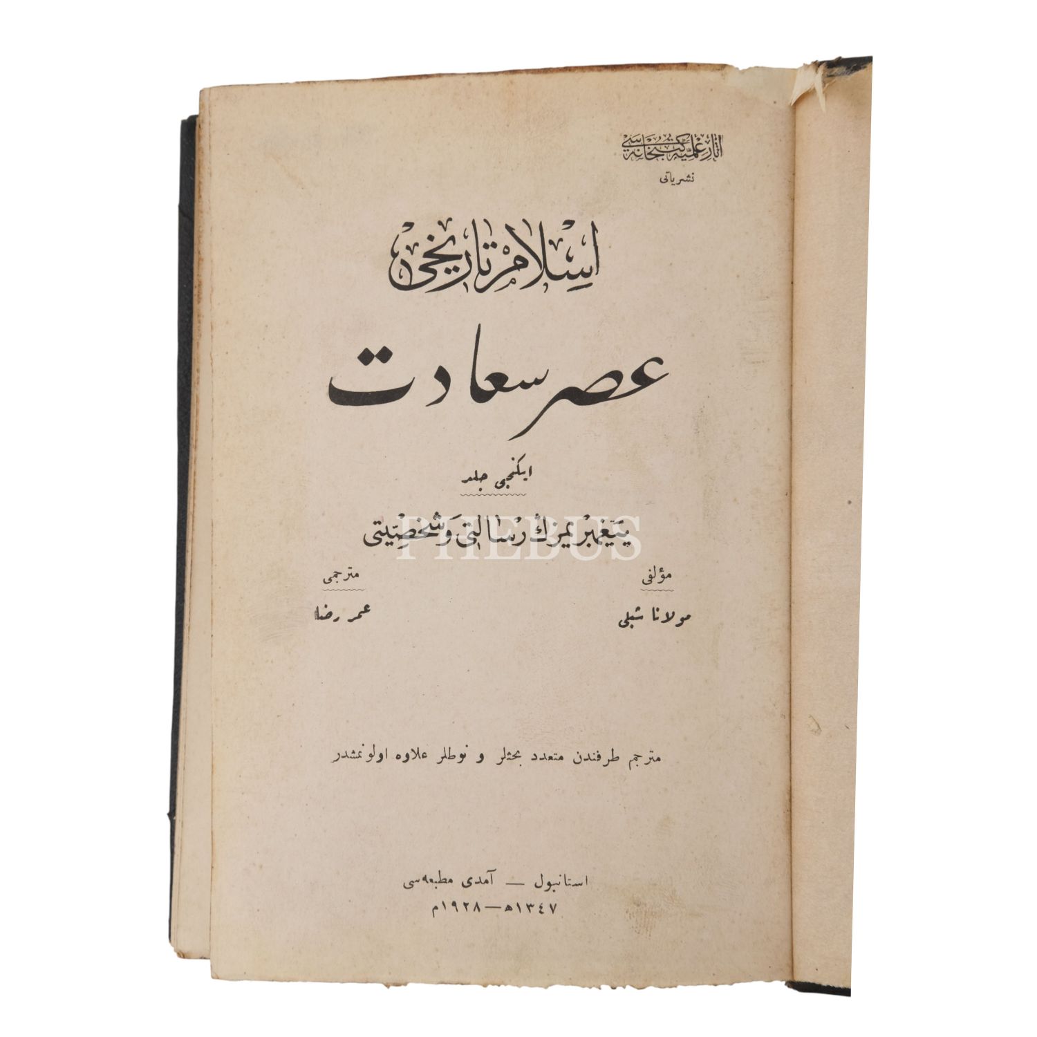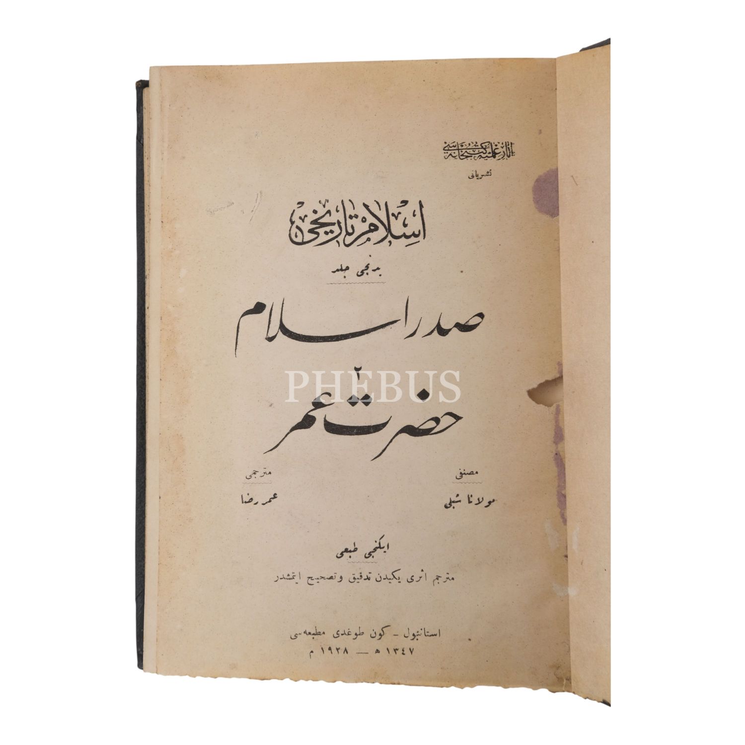 İSLAM TARİHİ, Mevlânâ Şiblî, çeviren: Ömer Rıza, 1928, Âmedî Matbaası, 1958+295+272+528+64+125+528 sayfa, 14x19 cm...