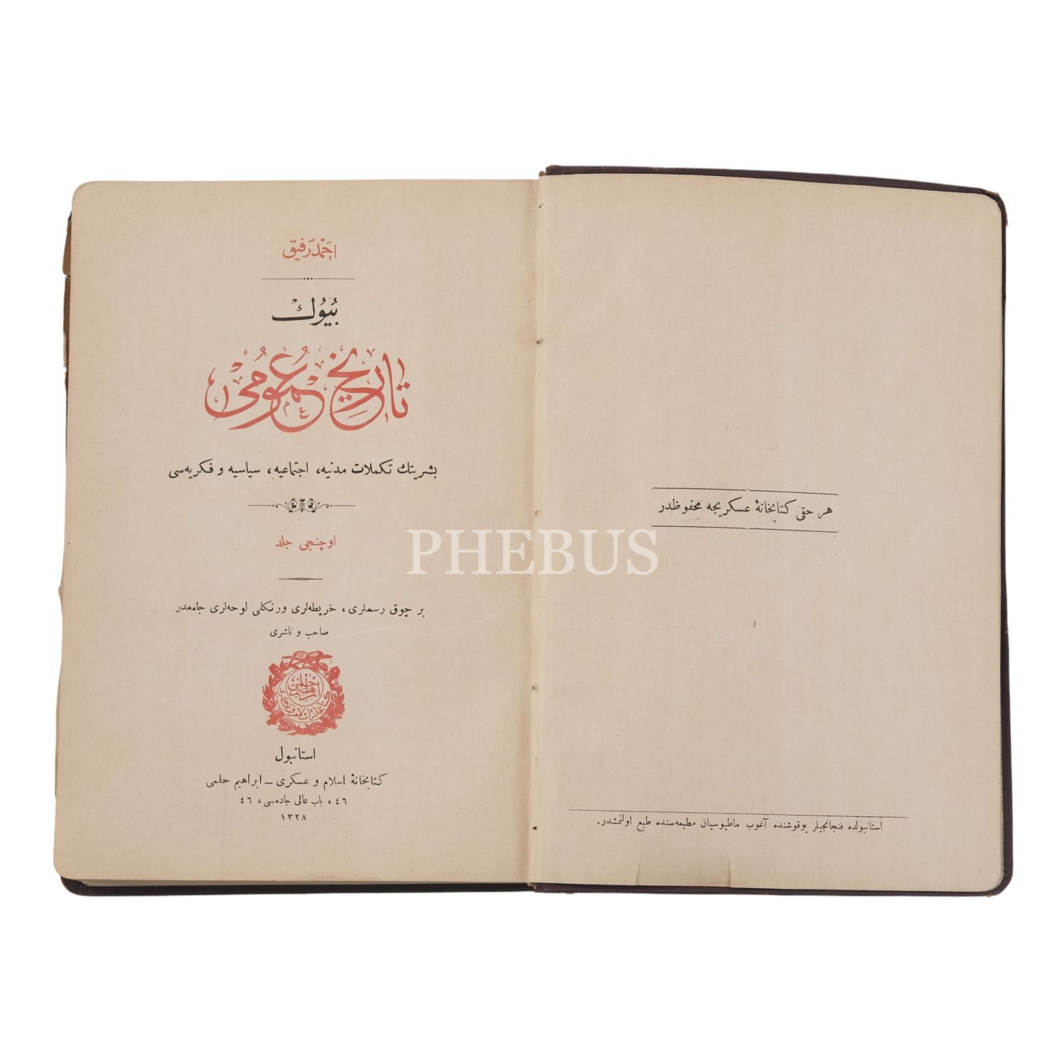 BÜYÜK TÂRÎH-İ UMÛMÎ, 6 cilt takım, Ahmed Refik, 1327, Kitâbhâne-i İslâm ve Askerî, 478+467+478+480+476+474 sayfa, 16x24 cm...