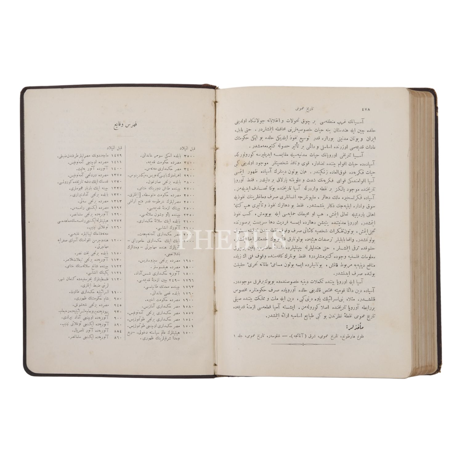 Dünya tarihinin ana hatlarını ilk çağlardan başlayarak tek bir kaynakta toplayan metin. Yazar, tarihin de bir bilim olduğunu savunarak eserini bu doğrultuda disipliner tarzda hazırlamıştır.