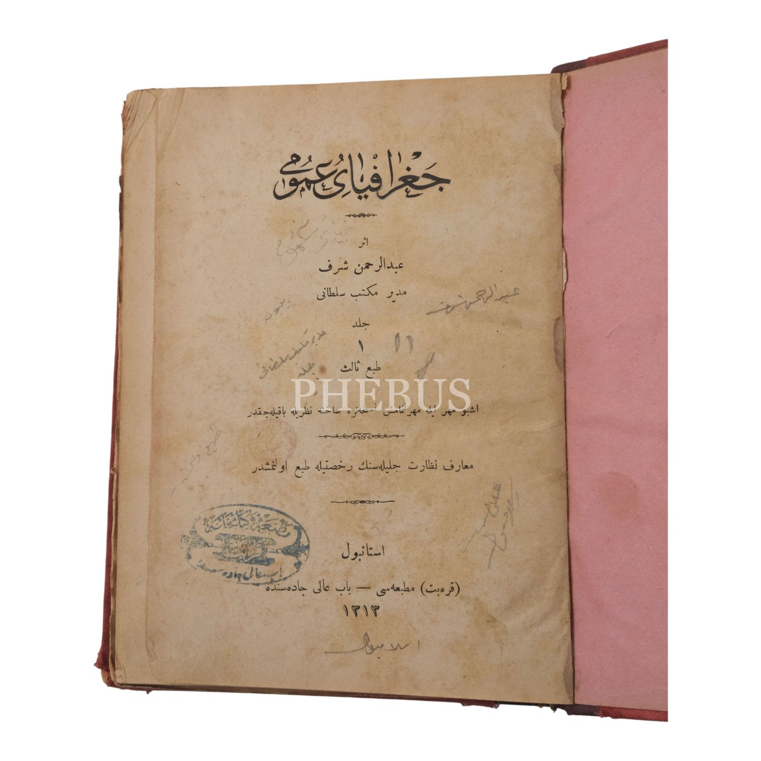 COĞRAFYA-YI UMÛMÎ, 1. cilt, Abdurrahman Şeref Bey, 1313, Karabet Matbaası, 384 sayfa, 34x20 cm...