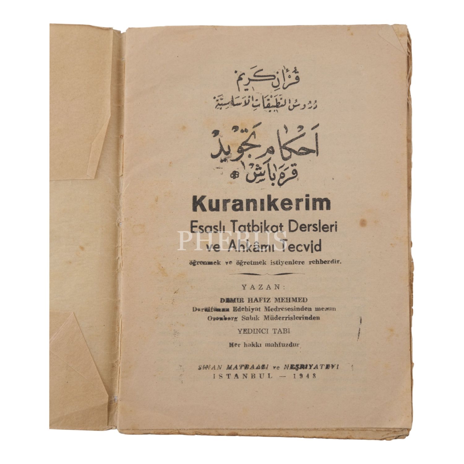 KARABAŞ TECVİDİ, Demir Hâfız Mehmed (Sayan), 1948, Sinan Matbaası, 30 sayfa, 15x21 cm...
