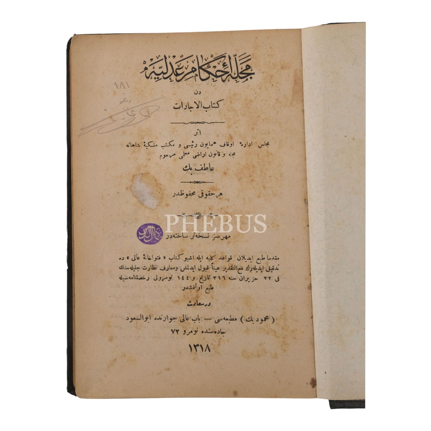 MECELLE-İ AHKÂM-I ADLİYE´DEN KİTÂBÜ´L-İCÂRÂT, Âtıf Bey, 1318-1332, 141+56+27+48+68+34+46+53 sayfa,14x20 cm...