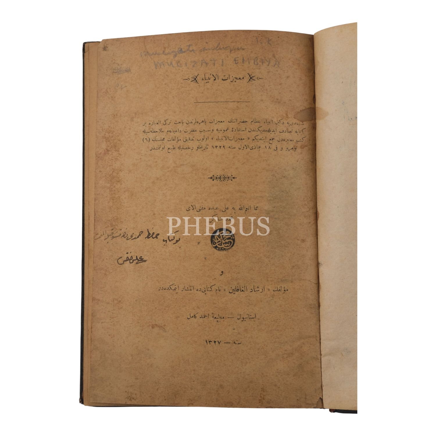 MUCİZÂTÜ´L-ENBİYÂ, Mehmed Şâkir (Çörüş), 1327, Matbaa-i Ahmed Kemal, 308 sayfa, 16x24 cm...