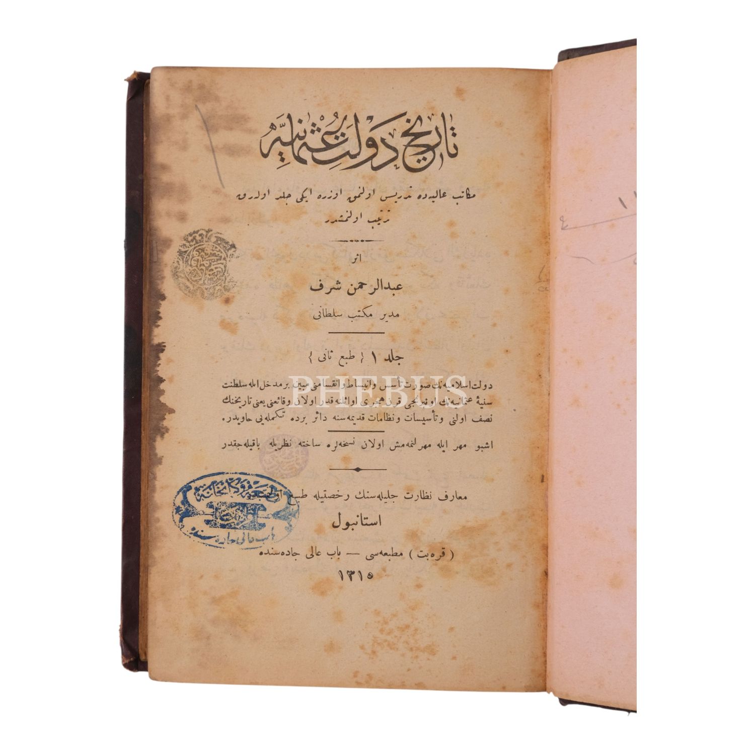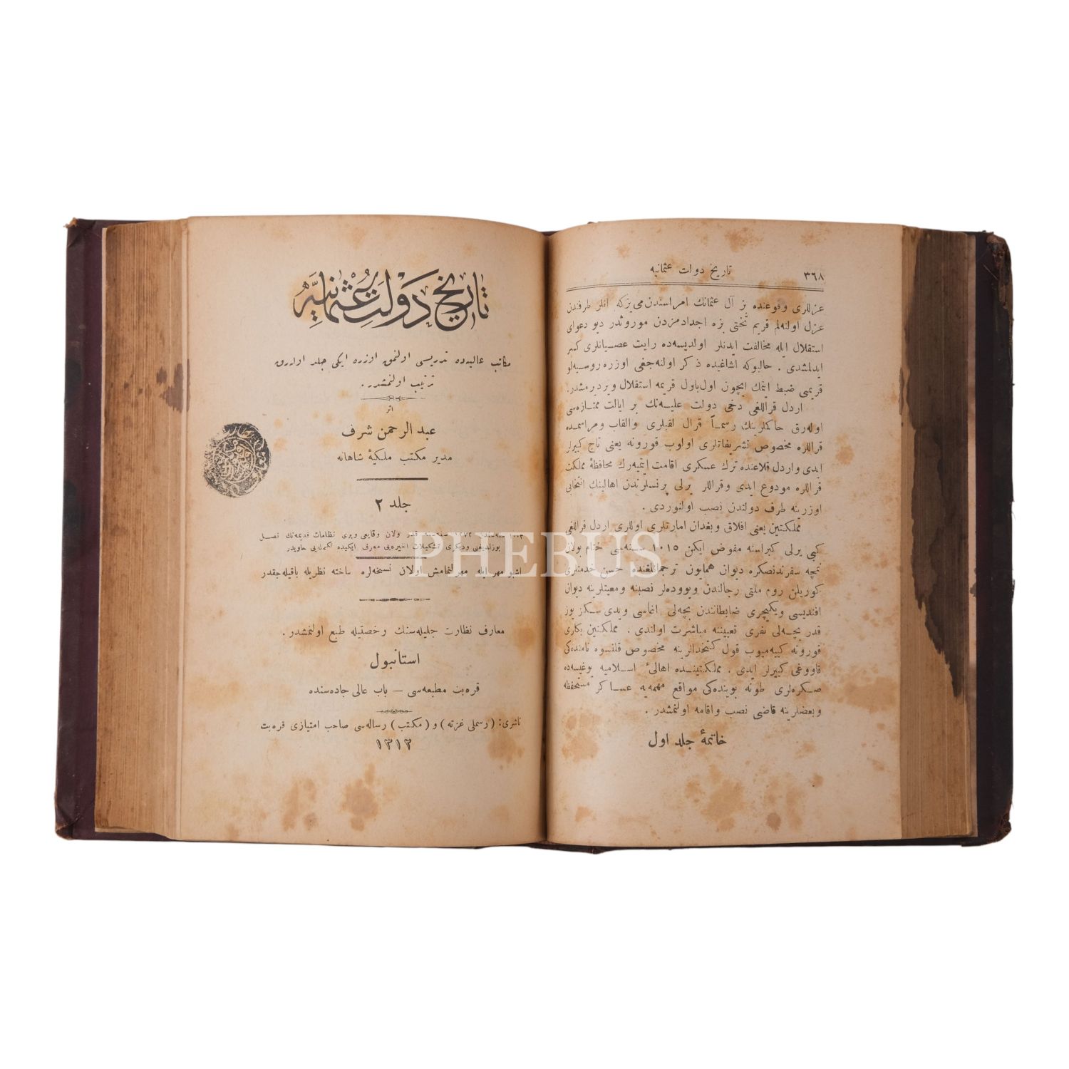 TÂRÎH-İ DEVLET-İ OSMÂNİYE, 2 cilt bir arada, Abdurrahman Şeref Bey, 1315, Karabet Matbaası, 368+388 sayfa, 14x20 cm...