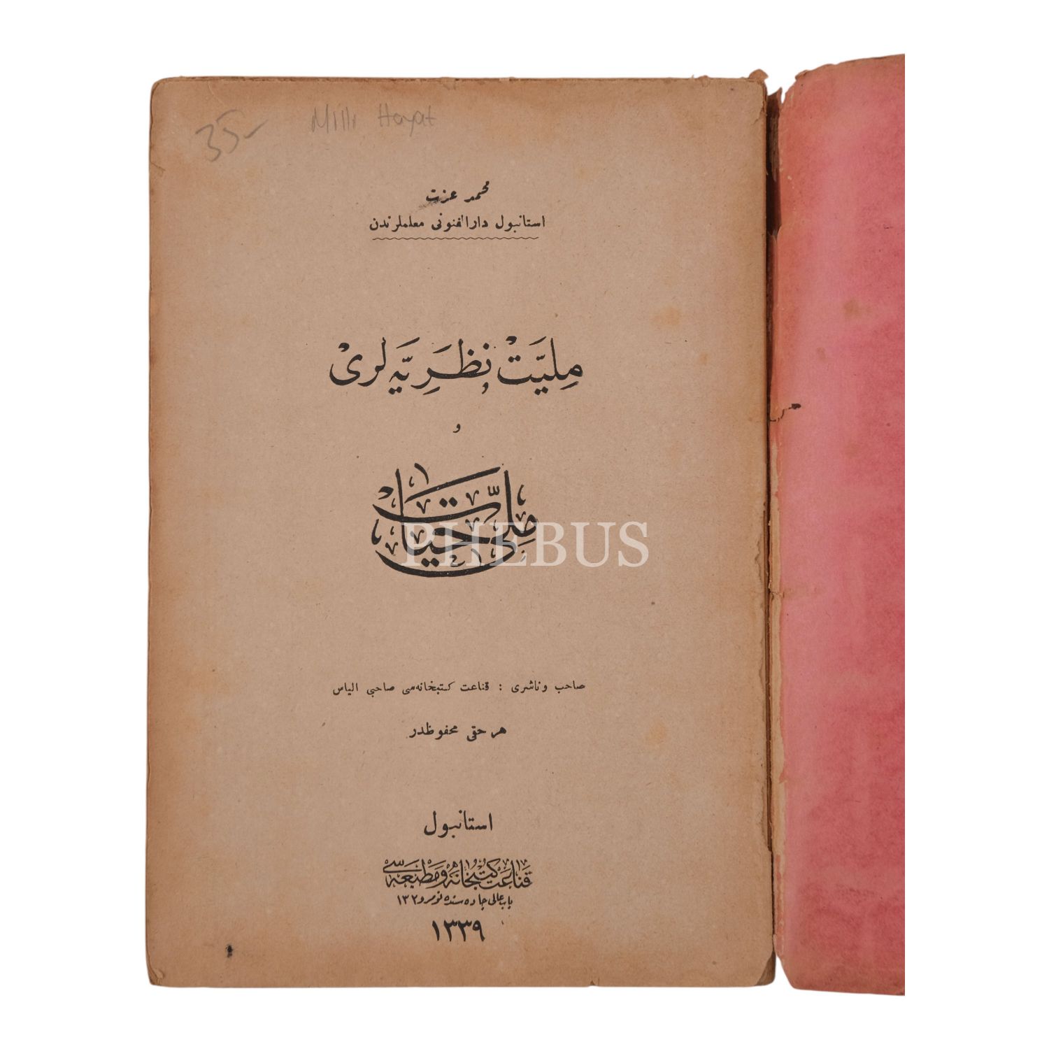 MİLLİYET ve NAZARİYELERİ ve MİLLî HAYAT, Mehmed İzzet, 1339, Kanaat Matbaası, 168 sayfa, 13x20 cm...