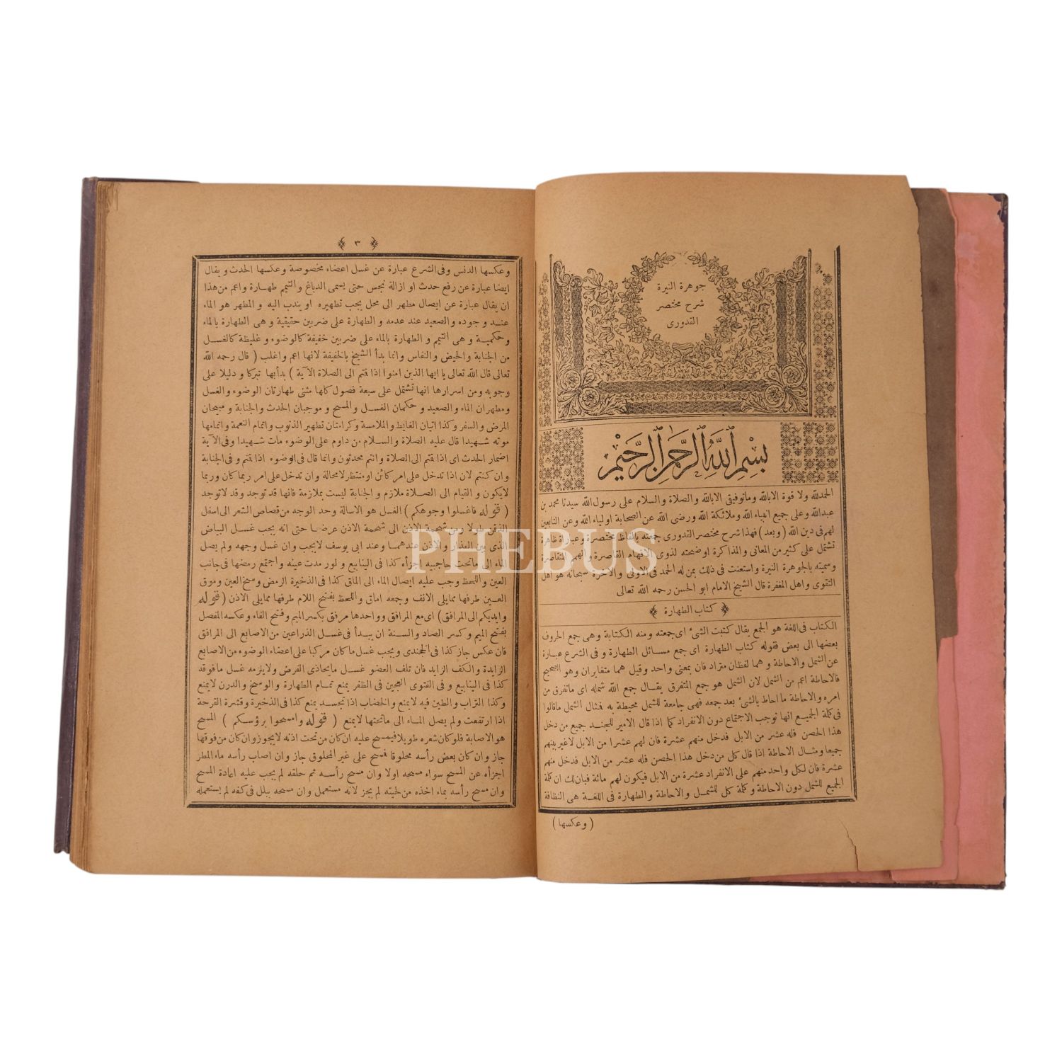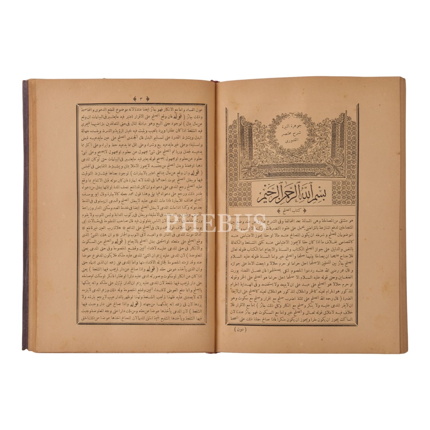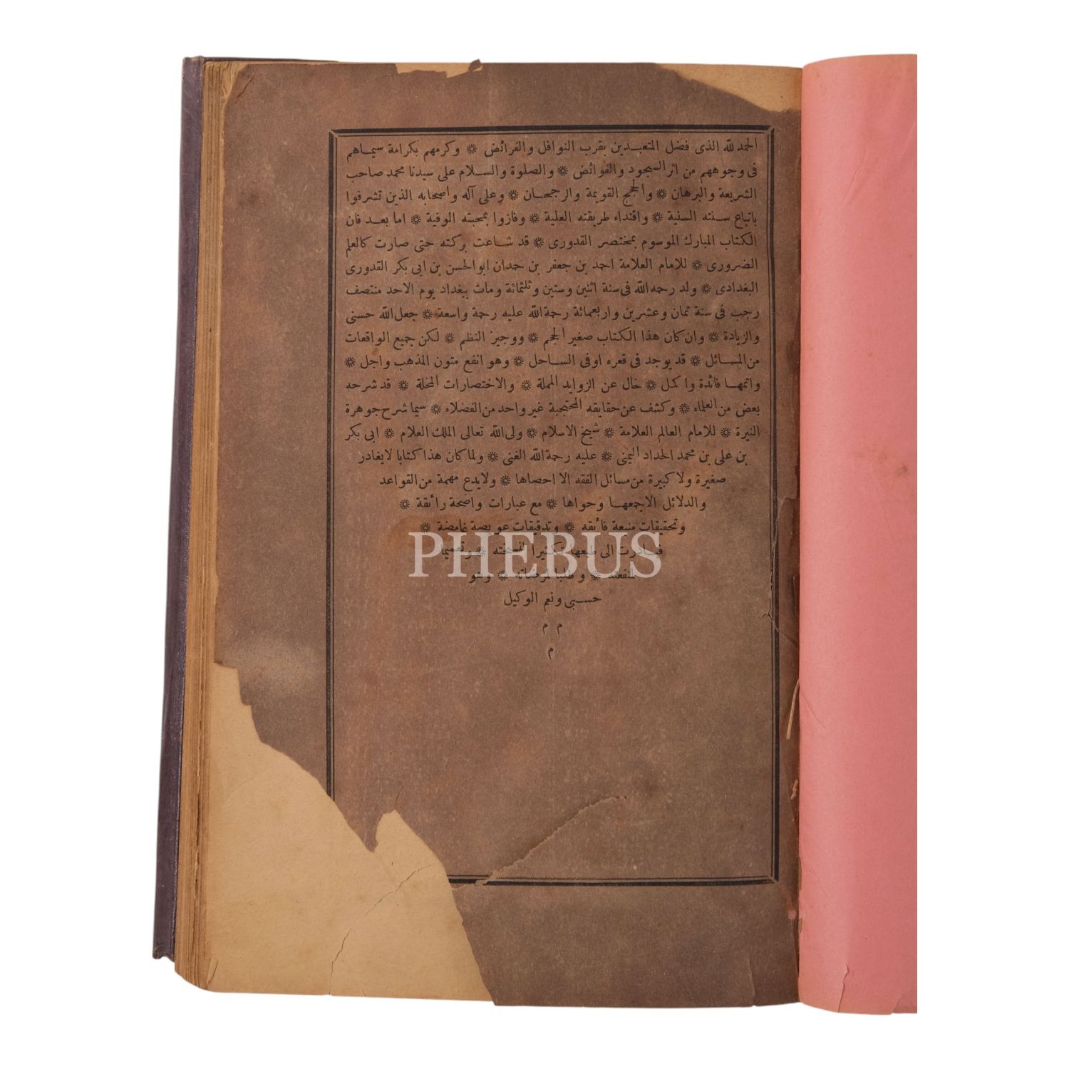 Mıklebli ve işlemeli deri dönem cildinde. Temel Hanefi metinlerinden Kuduri'ye yazılan şerh eser.