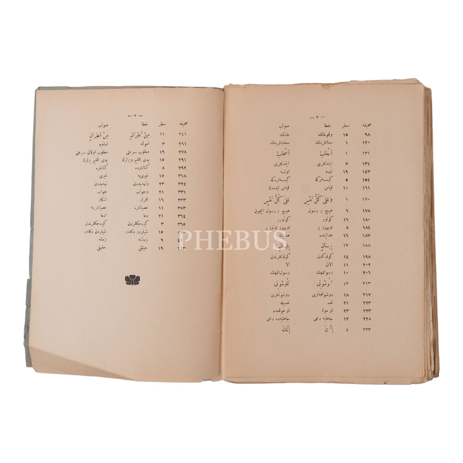 *Ciltli kitaplardan ilkinin arka kapaktan başlayan ve yarıya kadar devam eden yenik vardır. Metin zarar görmemiştir. 2. ciltli kitabın sırtında alt ve üstte yenikler vardır.