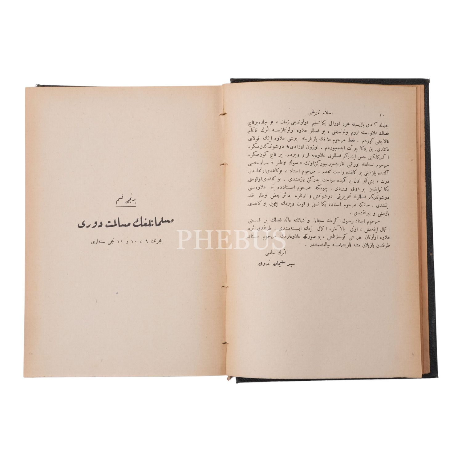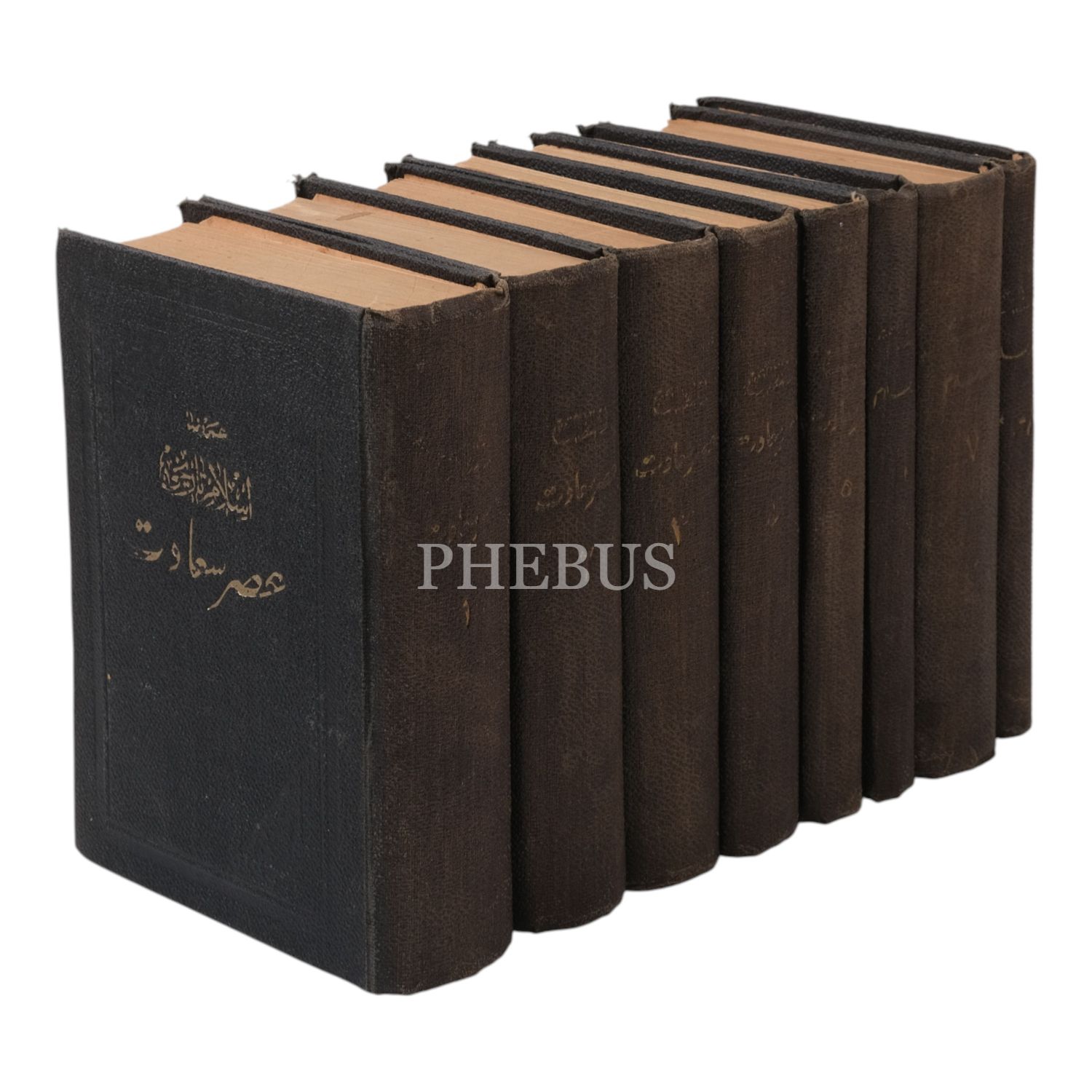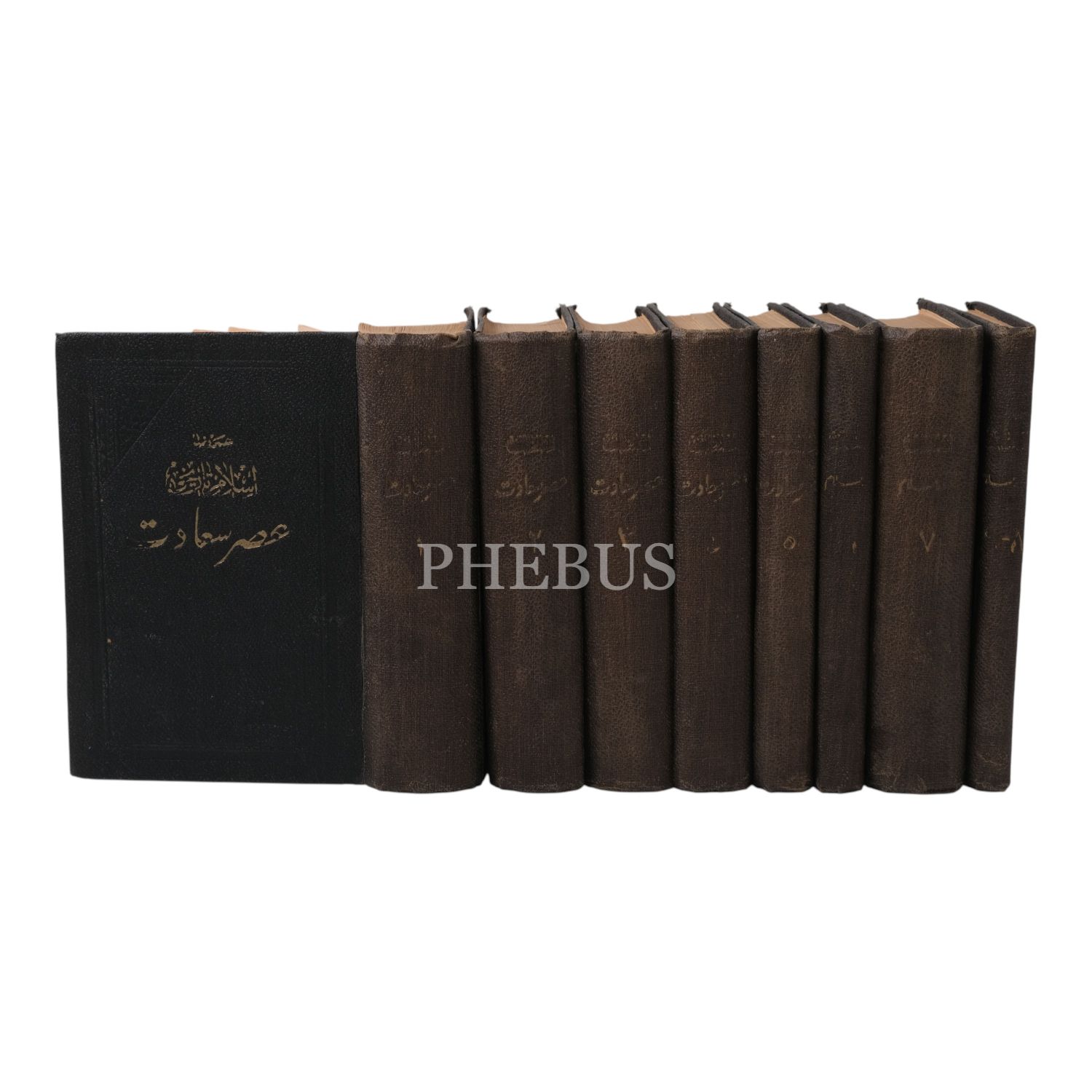 İSLAM TARİHİ, 9 cilt, Mevlânâ Şiblî, çeviren: Ömer Rıza, 1921, Âmedî Matbaası, 1958+287+272+528+64+125 sayfa, 14x20 cm...