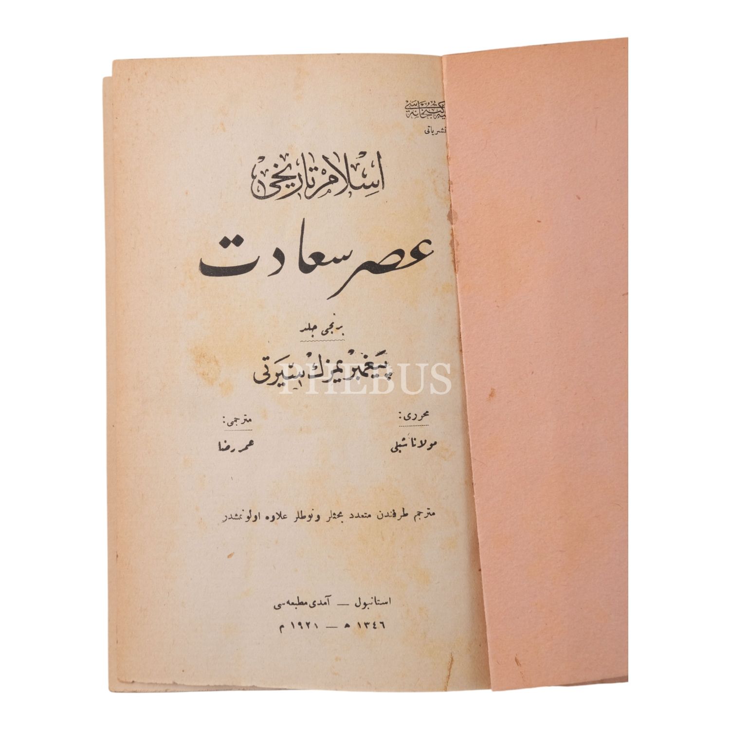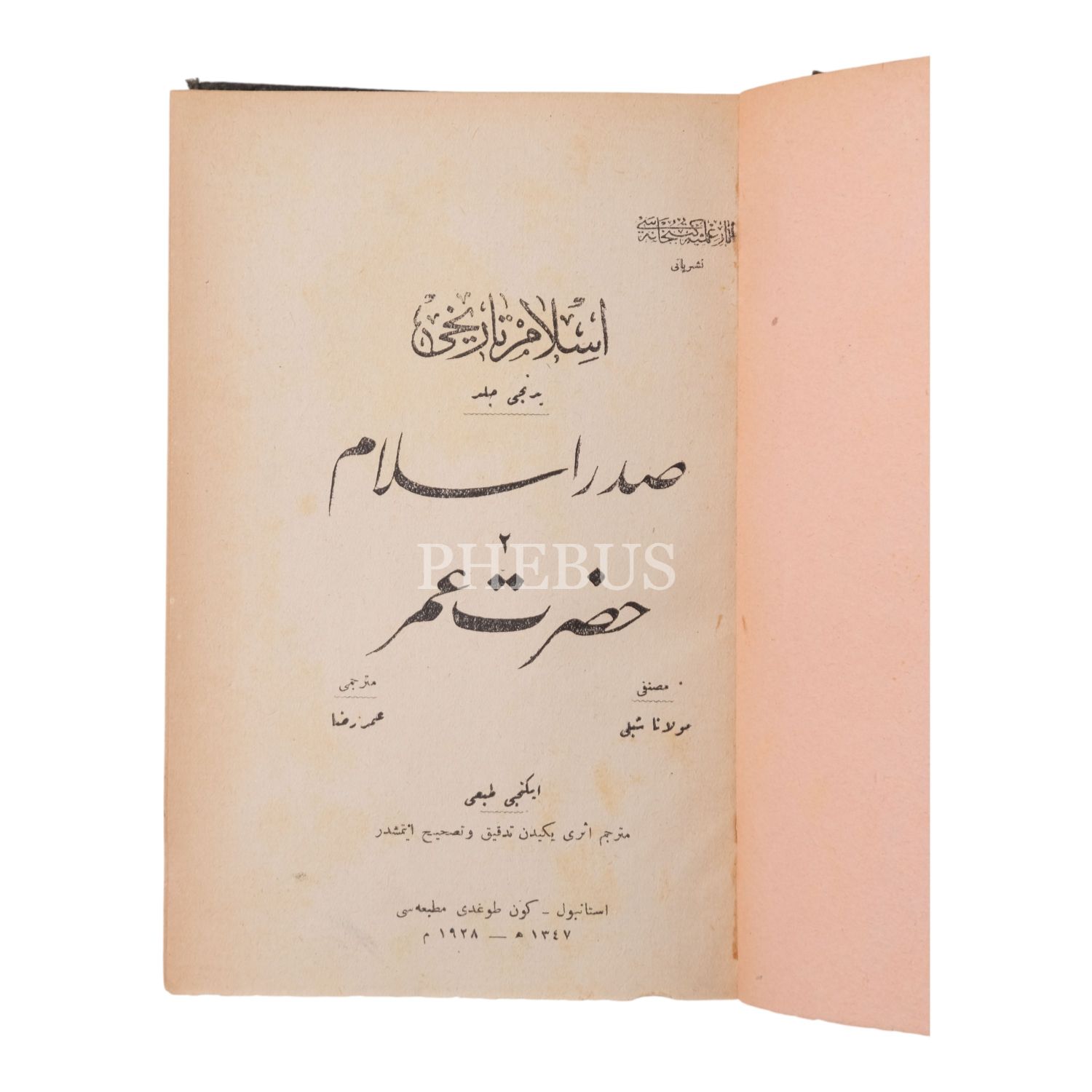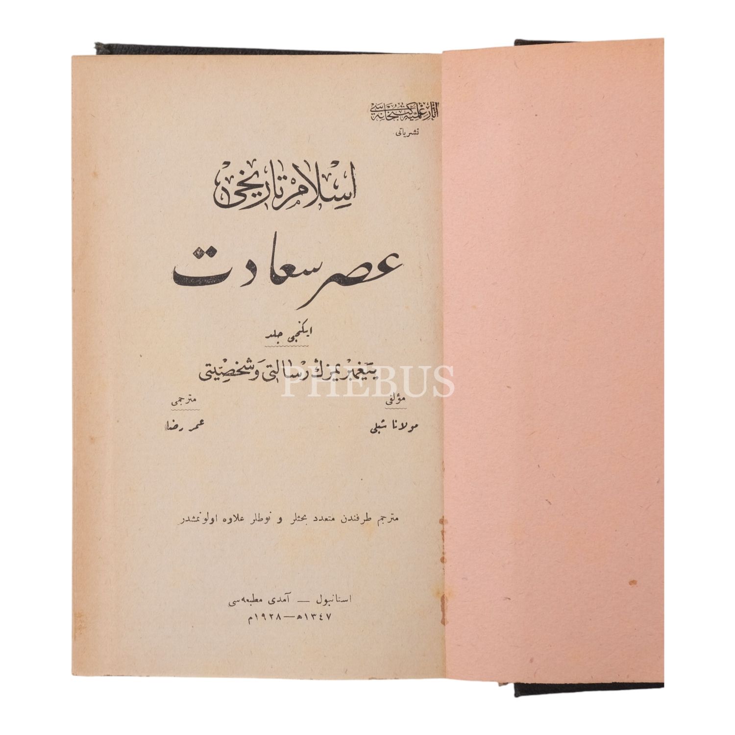 İSLAM TARİHİ, 9 cilt, Mevlânâ Şiblî, çeviren: Ömer Rıza, 1921, Âmedî Matbaası, 1958+287+272+528+64+125 sayfa, 14x20 cm...