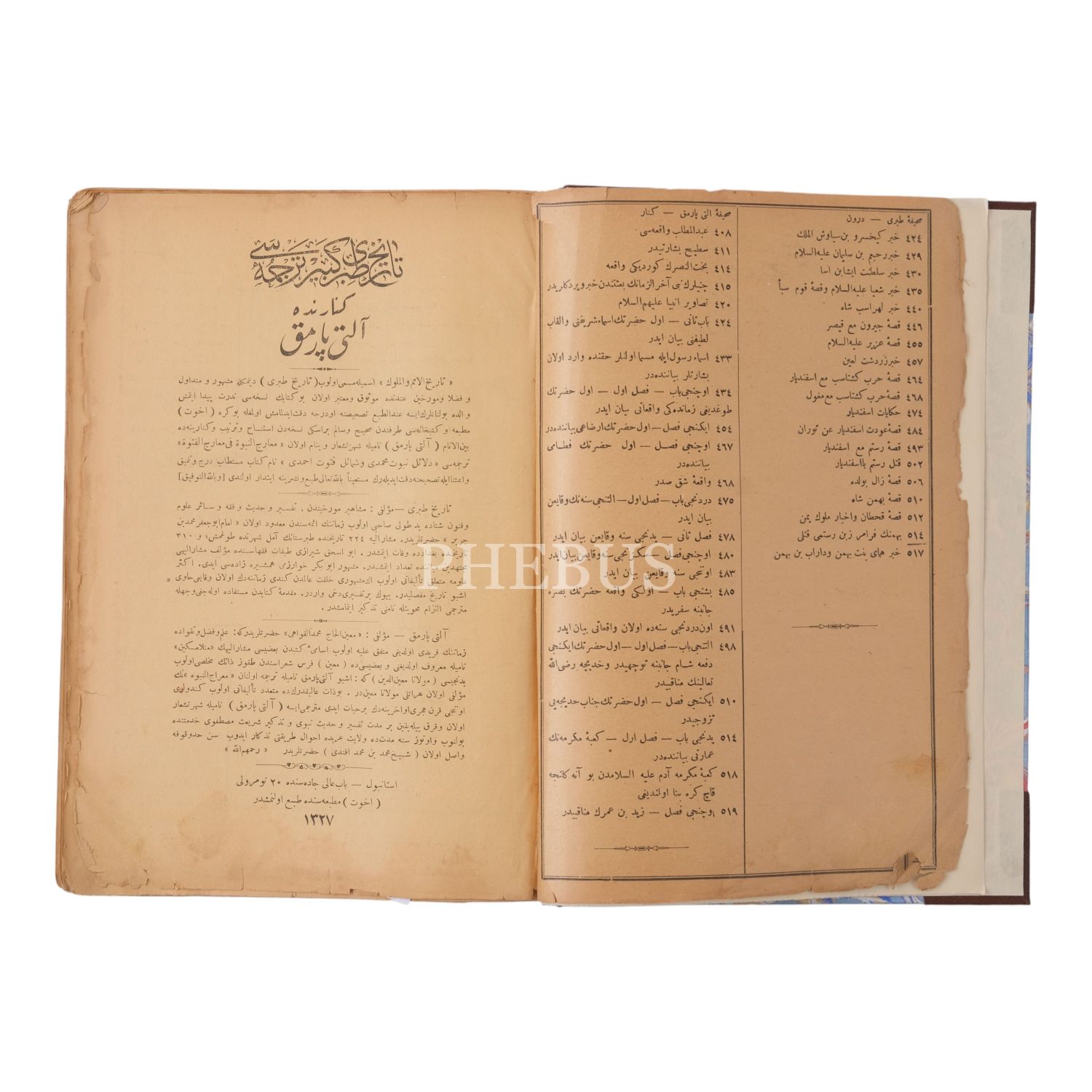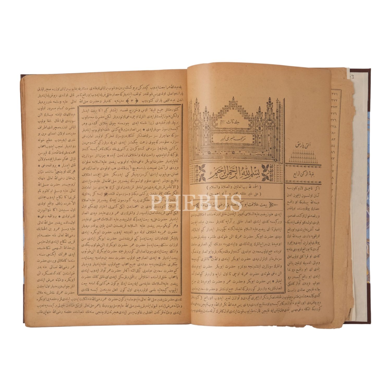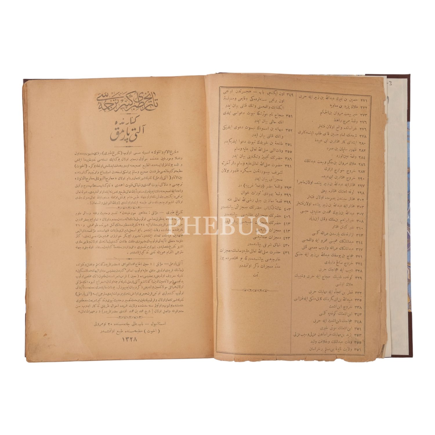 TERCÜME-İ TÂRÎH-İ TABERÎ ve kenarında ALTIPARMAK, 3 cilt takım, Ebu Cafer Taberi-Altıparmak Mehmed Efendi, 1327-28, Uhuvvet Matbaası, 520+563+538 sayfa, 19x27 cm...