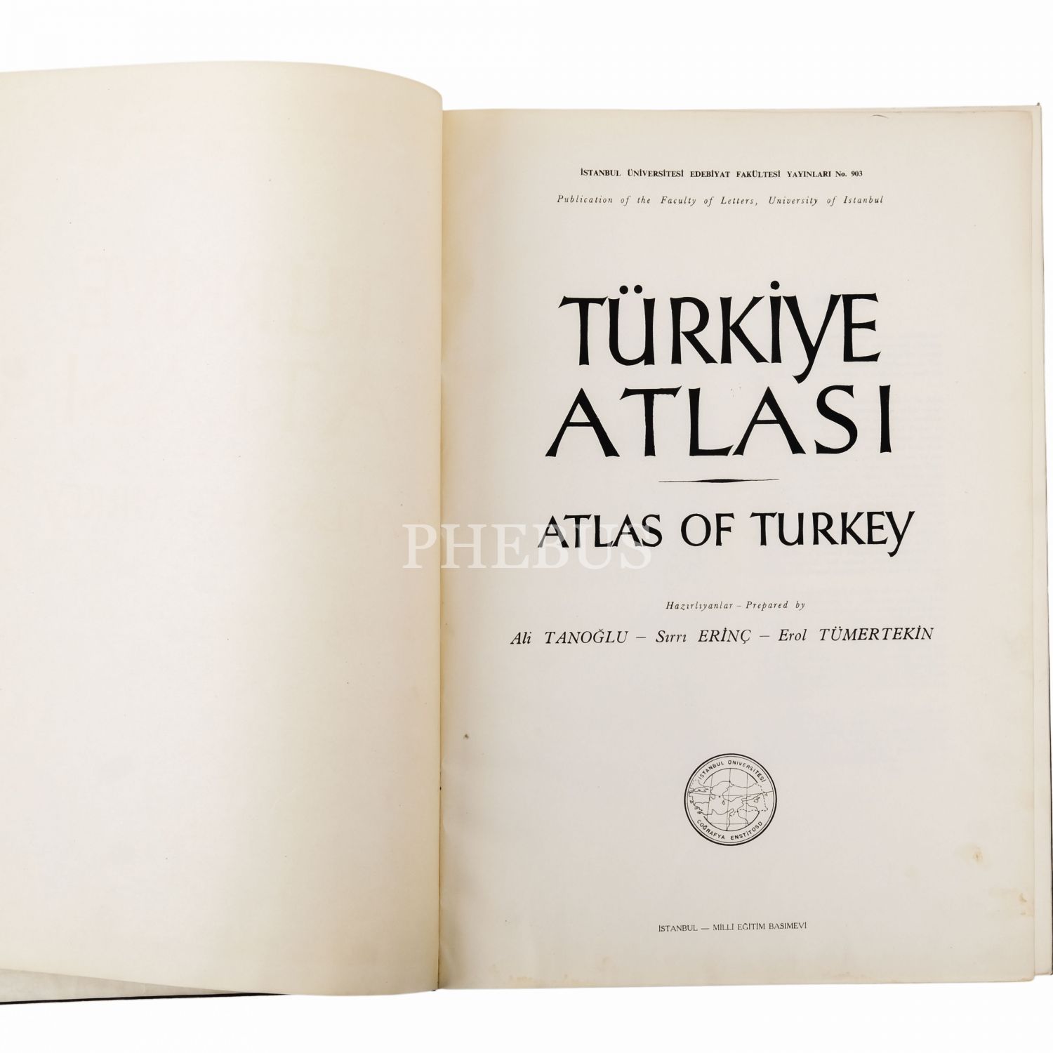 TÜRKİYE ATLASI, (hazırlıyanlar: Ali Tanoğlu - Sırrı Erinç - Erol Tümertekin), 1961, Millî Eğitim Basımevi, 35x49 cm...