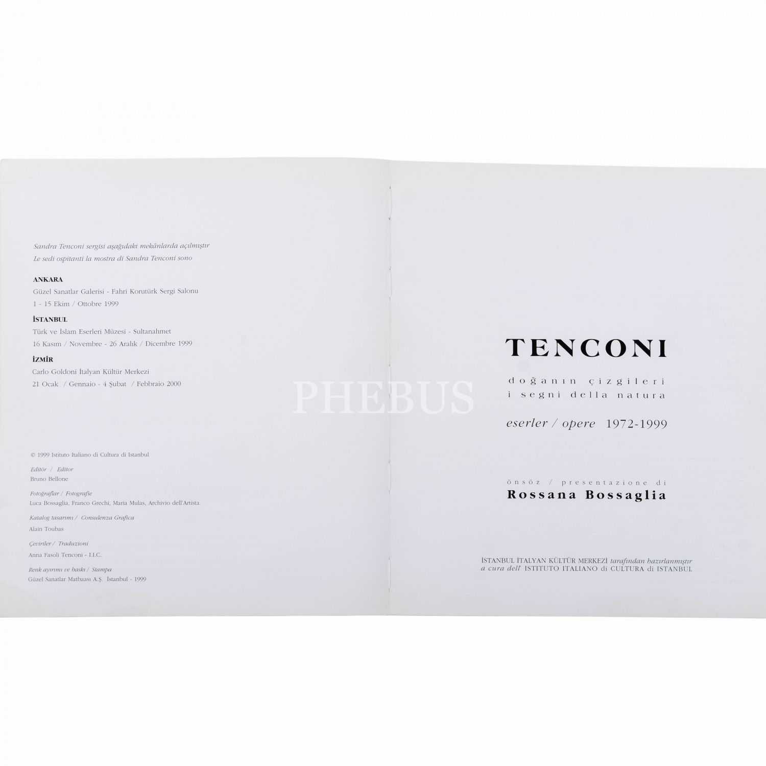 TENCONI: DOĞANIN ÇİZGİLERİ (Eserler / 1972-1999), (editör: Bruno Bellone), 1999, İstanbul İtalyan Kültür Merkezi, 23x27 cm...