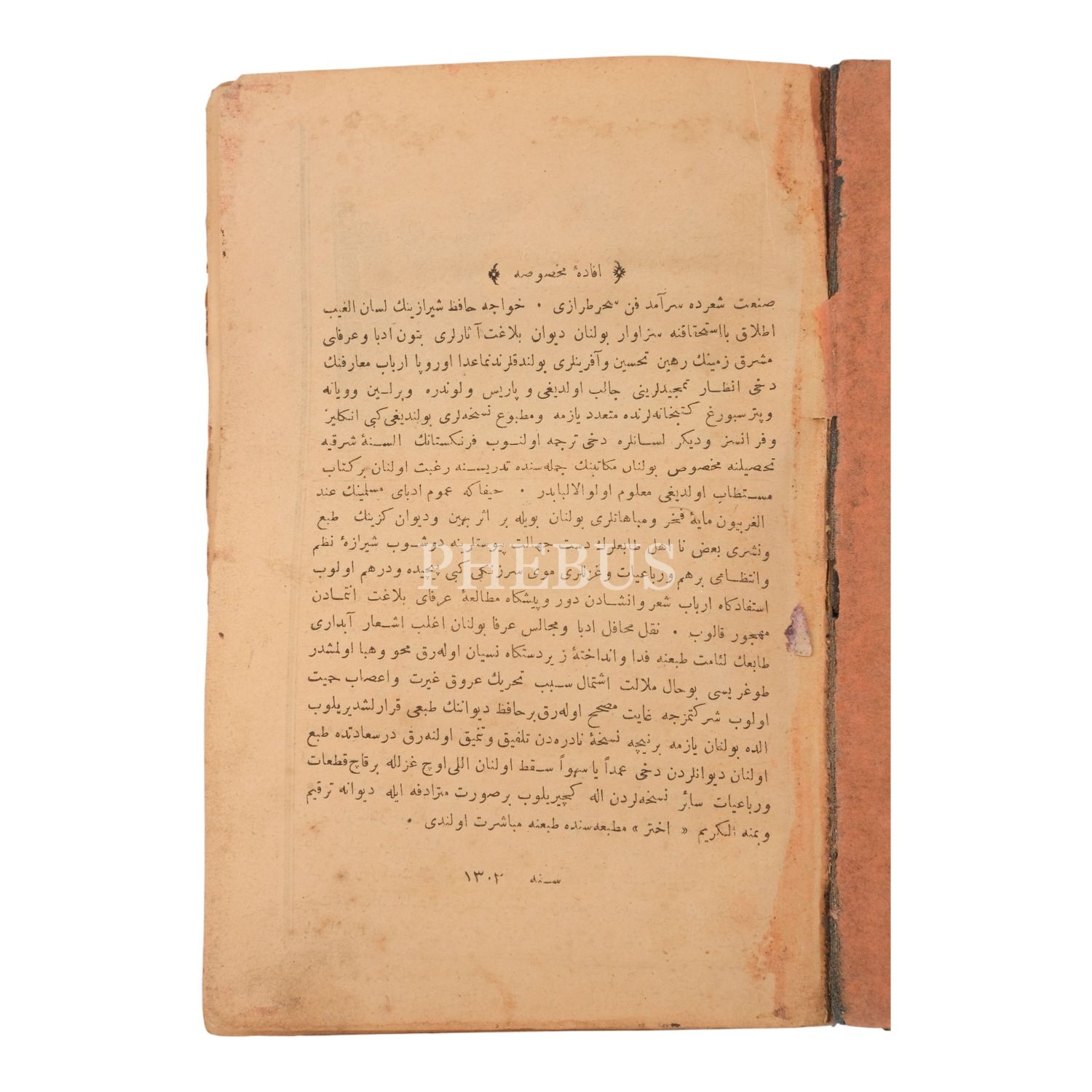 DÎVÂN-İ HÂFIZ, 1303, Ahter Matbaası, 280 sayfa, 15x23 cm...