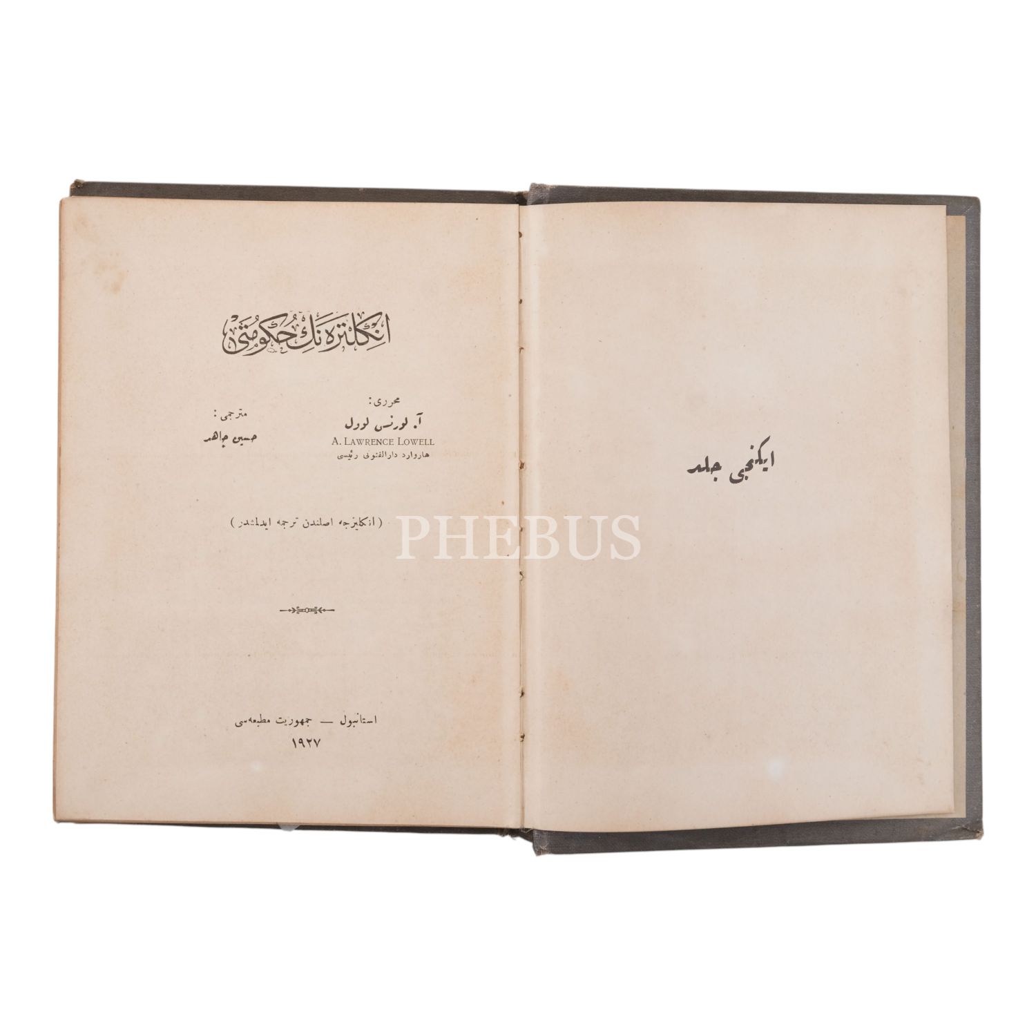 İNGİLTERE´NİN HÜKÛMETİ, 2. cilt, A. Lawrence Lowell, çeviren: Hüseyin Cahid, 1917, Cumhuriyet Matbaası, 422 sayfa, 15x20 cm...