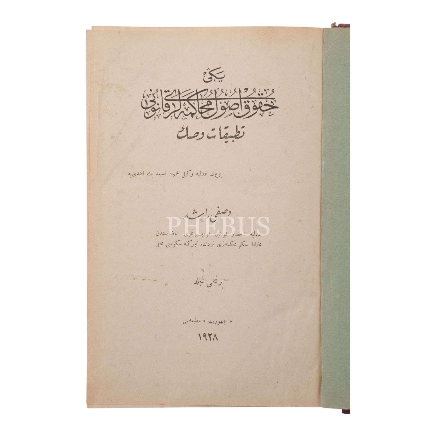 YENİ HUKÛK-İ USUL MUHÂKEMELERİ KÂNUNU (TATBÎKÂT ve SAKK), 1. cilt, Vasfi Raşid, 1928, Cumhuriyet Matbaası, 146 sayfa, 15x23 cm...