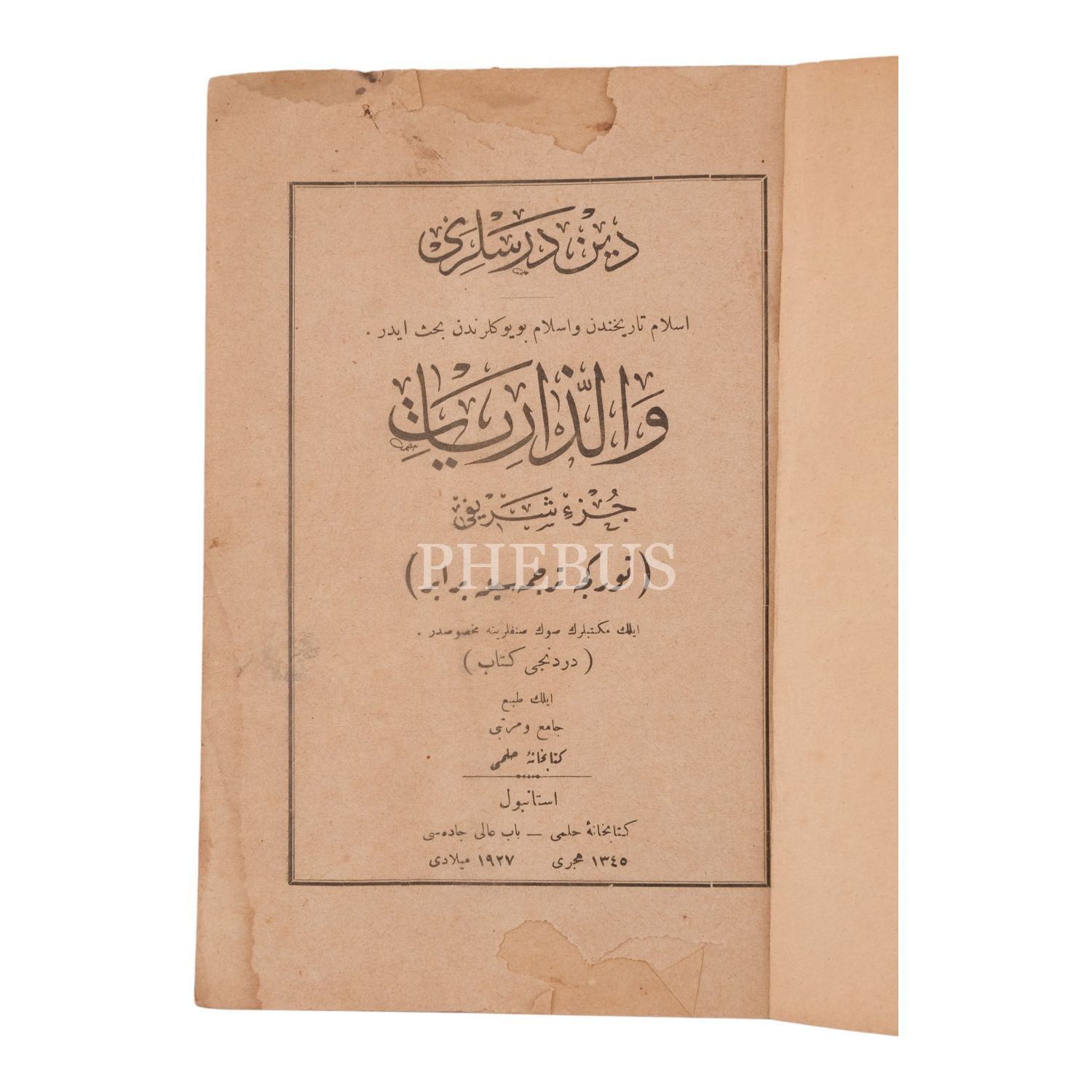 ZÂRİYÂT CÜZ-Ü ŞERÎFİ (TÜRKCE TERCÜMESİYLE BERABER), 1927, Orhaniye Matbaası, 128 sayfa, 15x23 cm...