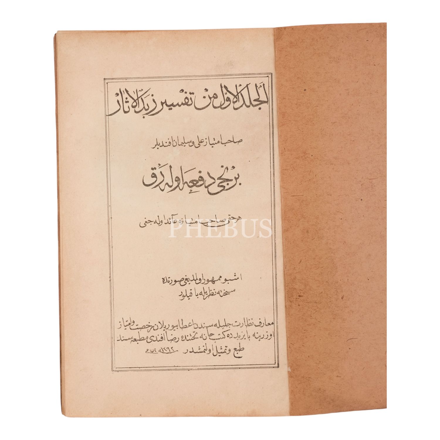 TEFSÎR-İ ZÜBDETÜ´L-ÂSÂR, 2 cilt bir arada - 1-8. cilt, 1292, Rıza Efendi Matbaası, 448+464 sayfa, 15x23 cm...