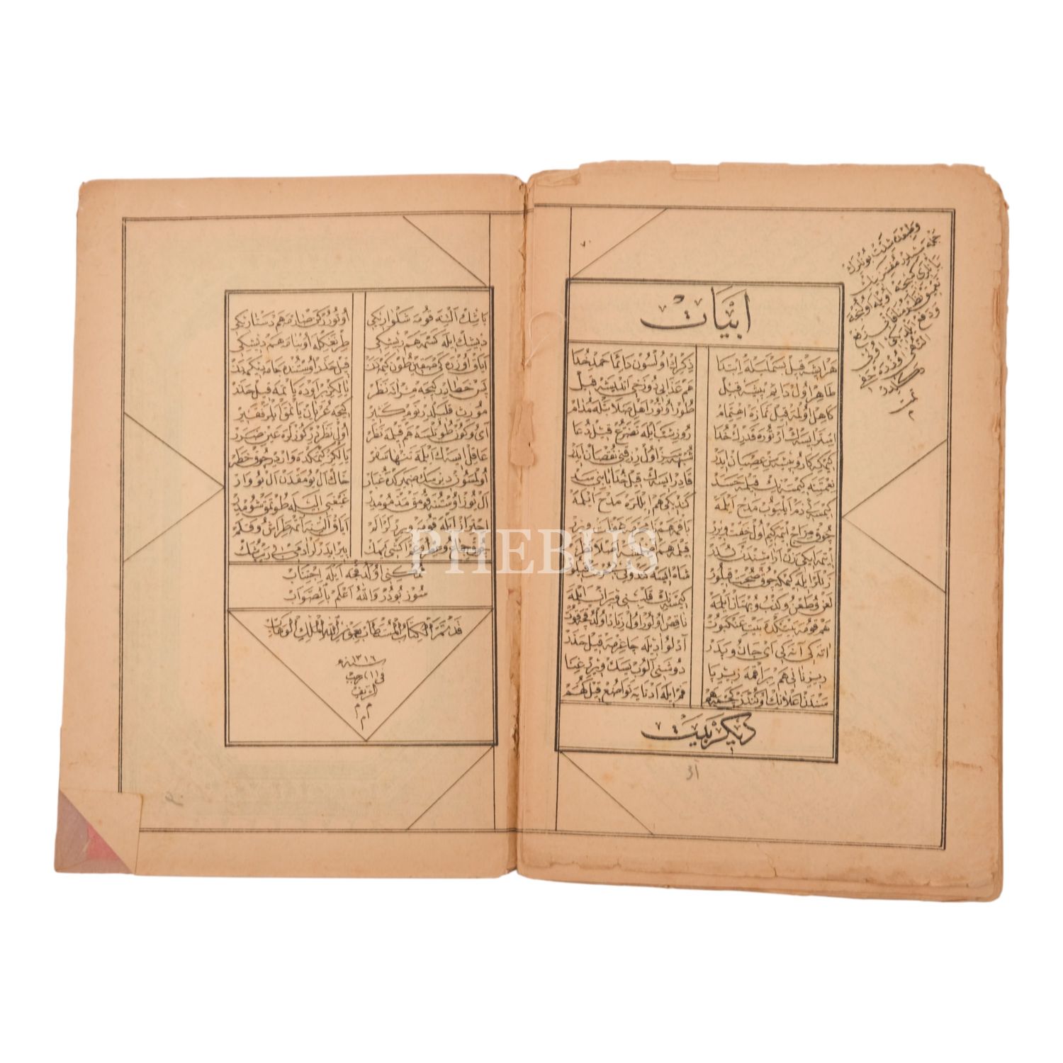Evlilik öncesinde ve sonrasında okunmak üzere hazırlanmış iki rehber eser. *Sonda iki yaprak formadan ayrılmıştır. Bu iki yaprakta metne ulaşmayan iki yırtılma vardır.