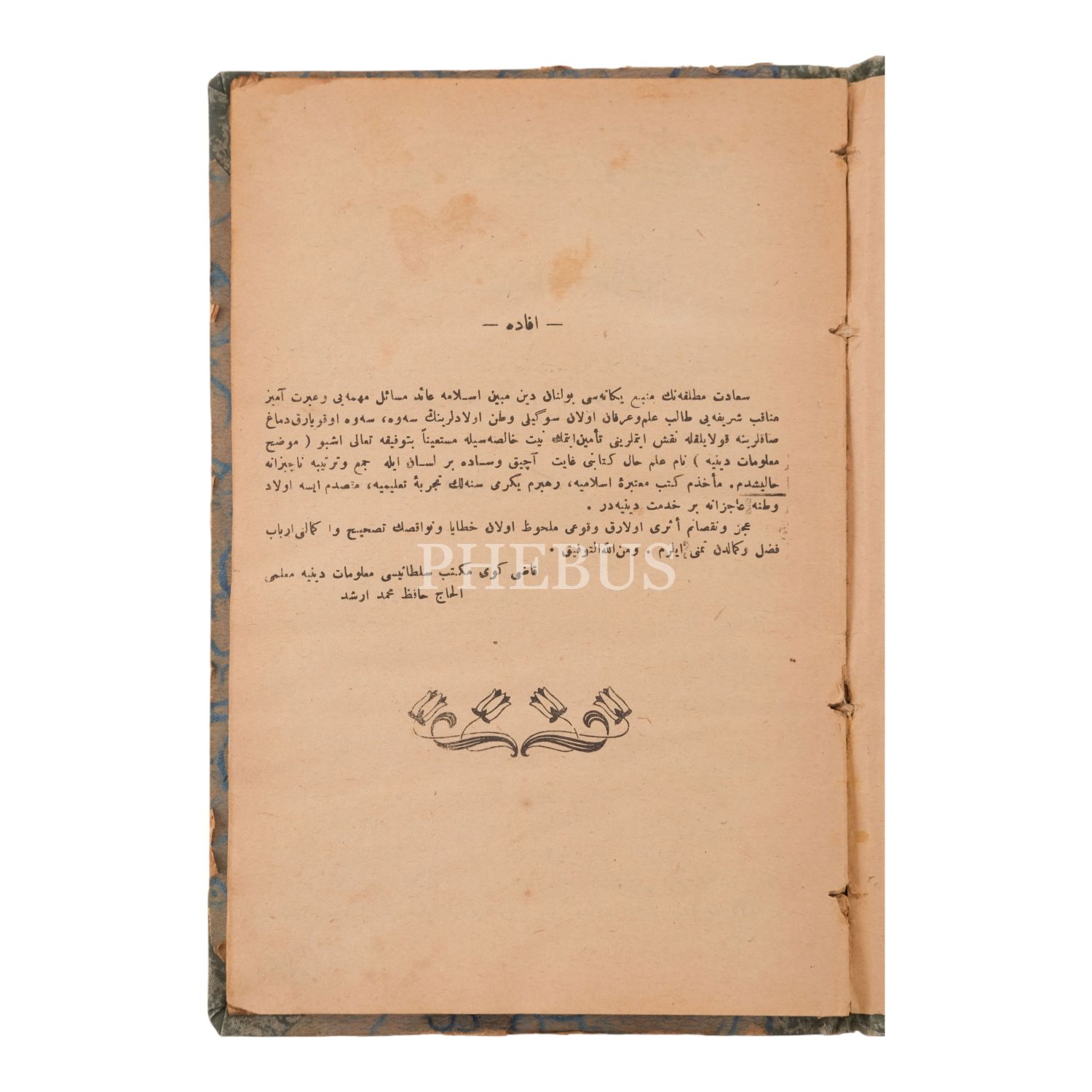 MUVAZZAH MALÛMÂT-I DİNİYE, 4. kısım, Muallim Râşid, 1337, Şirket-i Mürettibiye Matbaası, 56 sayfa, 15x23 cm...