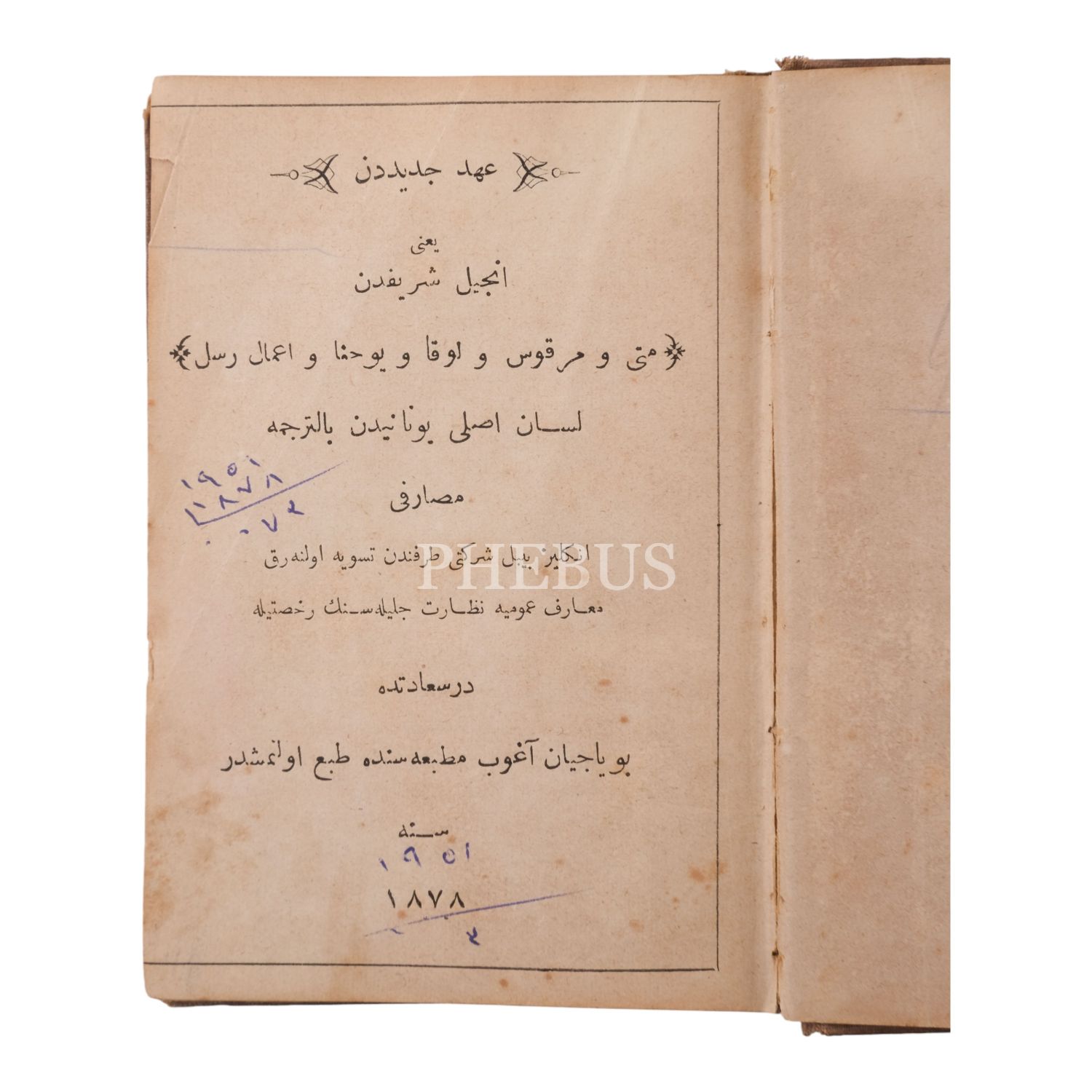 AHD-İ CEDİD´DEN yani İNCİL-İ ŞERİF´DEN tercüme, 1878, Boyacıyan Agop Matbaası, 80 sayfa, 9x14 cm...