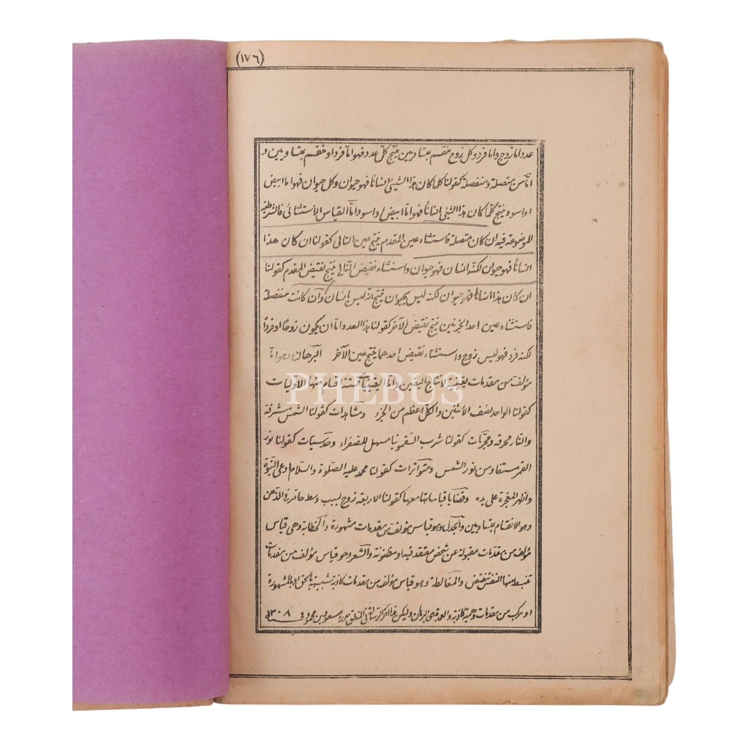 Ünlü mantık eserinin kapsamlı bir nüshasının taş baskısı. *İlk forması gevşemiştir ve kopuk sayfalar vardır. Gevşemenin sebebi sırtın ön kapak tarafındaki gevşemedir.