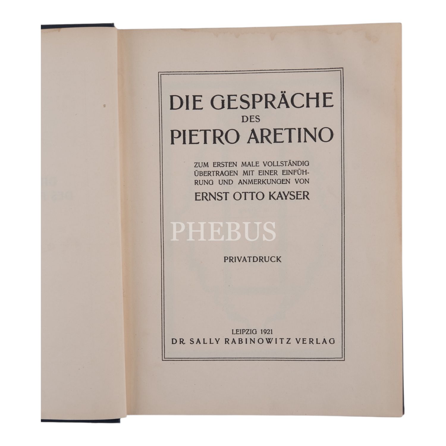 DIE GESPRACHE DES PIETRO ARETINO, Ernst Otto Kayzer , 1921, Dr. Sally Rabinowitz Verlag (Leipzig), 333 sayfa, 21x27 cm...