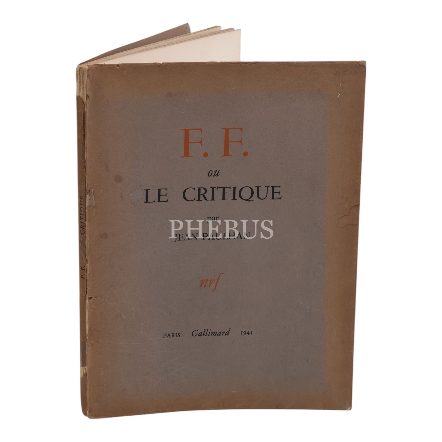F.F. OU LE CRITIQUE, Jean Paulhan, 1945, Gallimard (Paris), 85 sayfa, 24x32 cm...