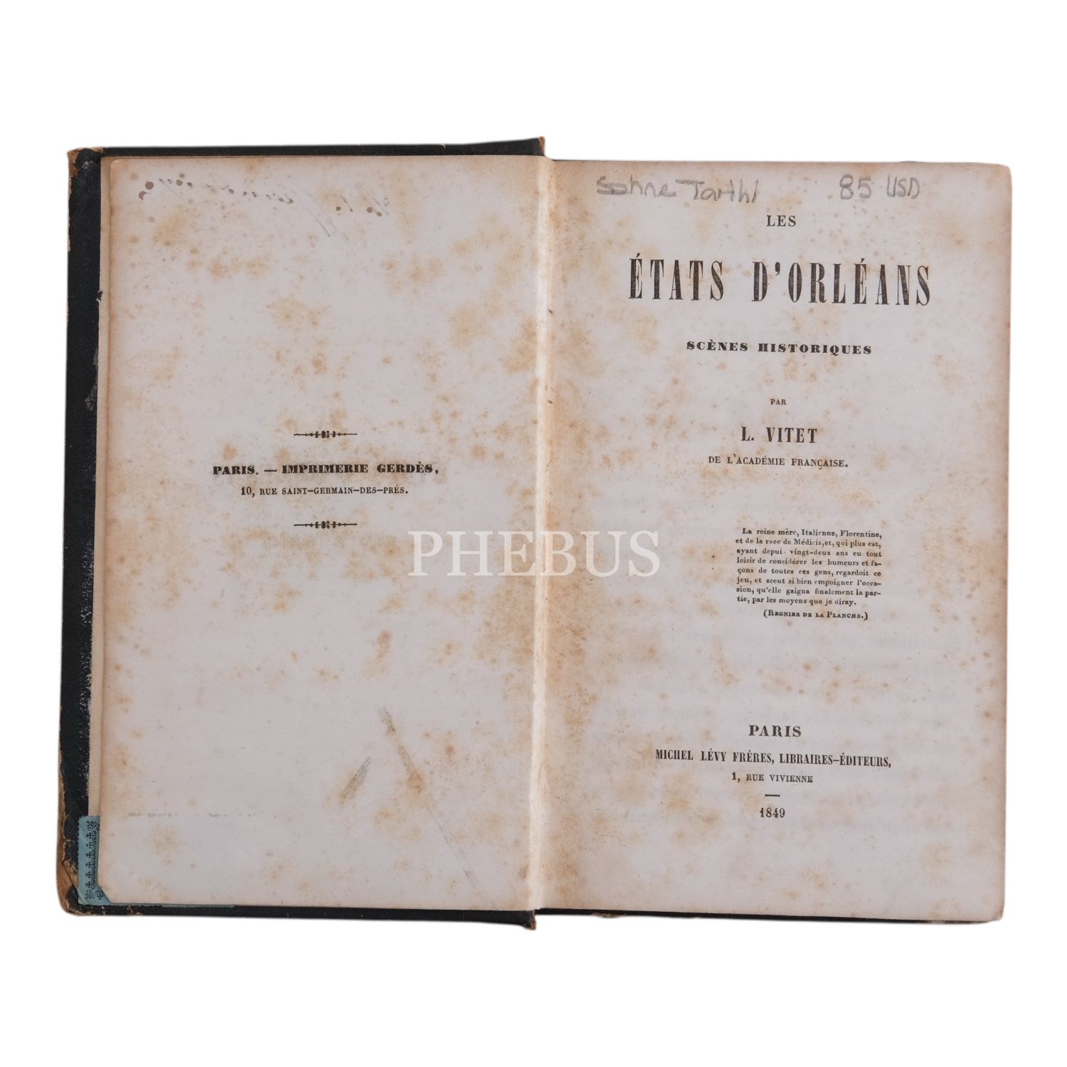 LES ETATS D´ORLEANS SCENES HISTORIQUES, L. Vitet, 1849, Michel Levy Freres (Paris), 306 sayfa, 12x18 cm...