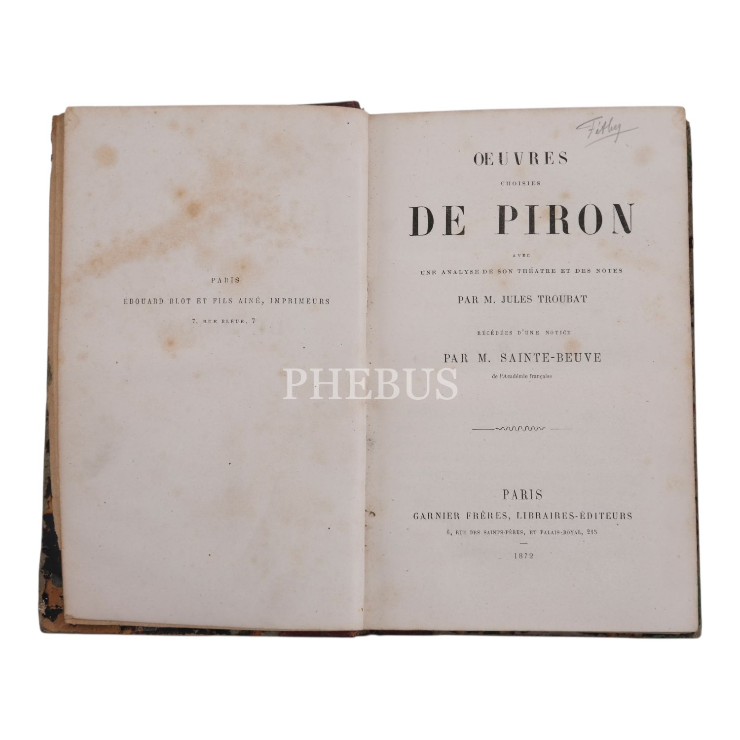 OEUVRES CHOISIES DE PIRON, Jules Troubat, 1872, Garnier Freres, Libraires-Editeurs, 584 sayfa, 12x18 cm...