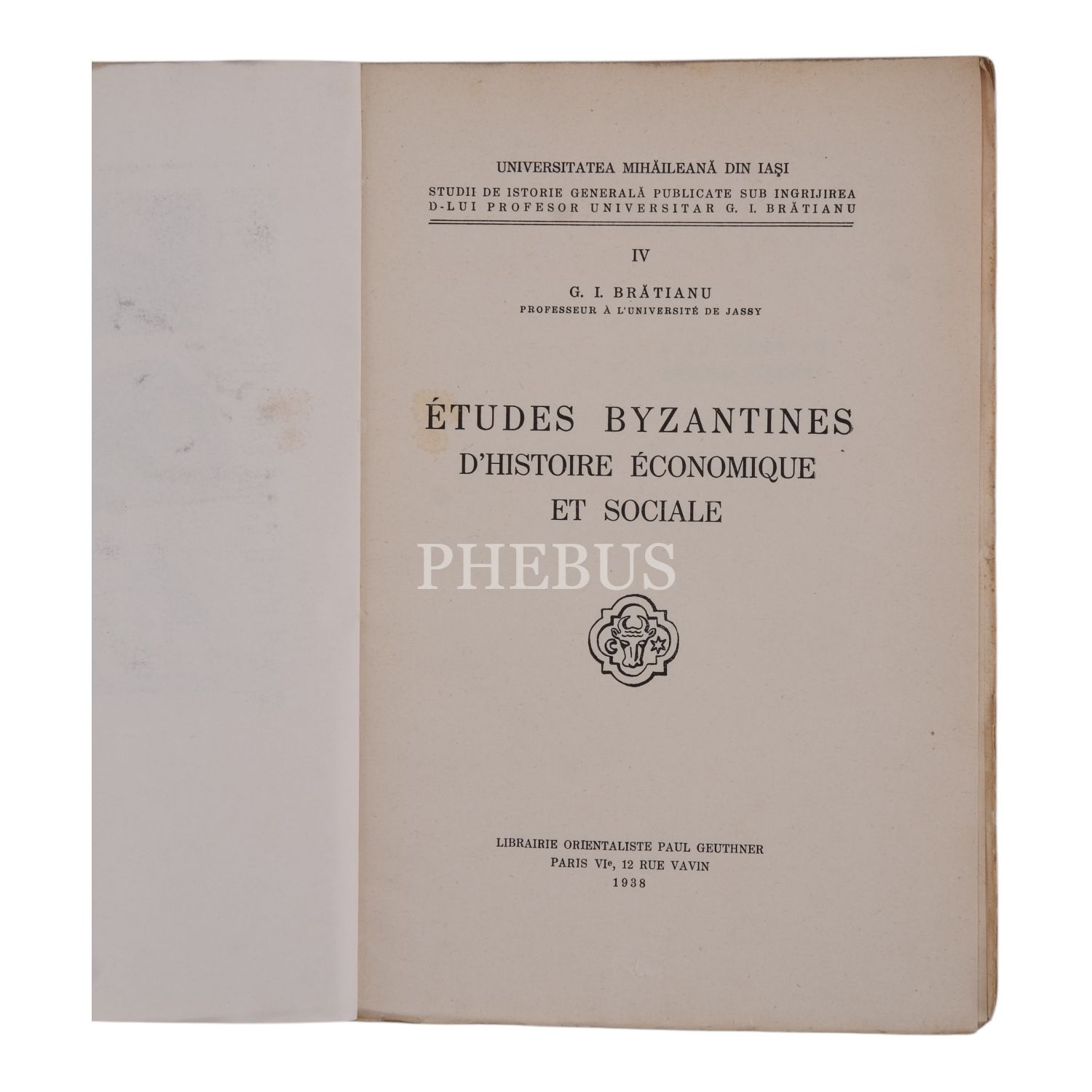 ETUDES BYZANTINES D´HISTOIR ECONOMIQUE ET SOCIALE, G. I. Bratianu, 1938, Librairie Orientaliste Paul Geuthner (Paris), 294 sayfa, 16x24 cm...