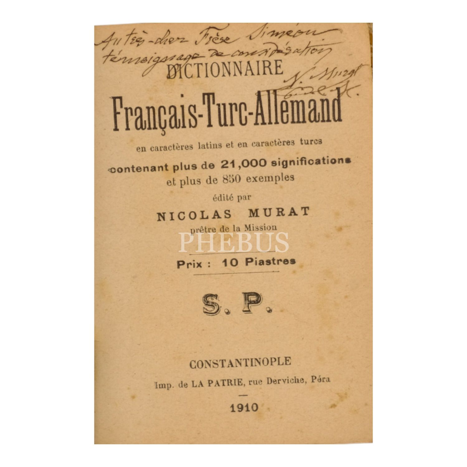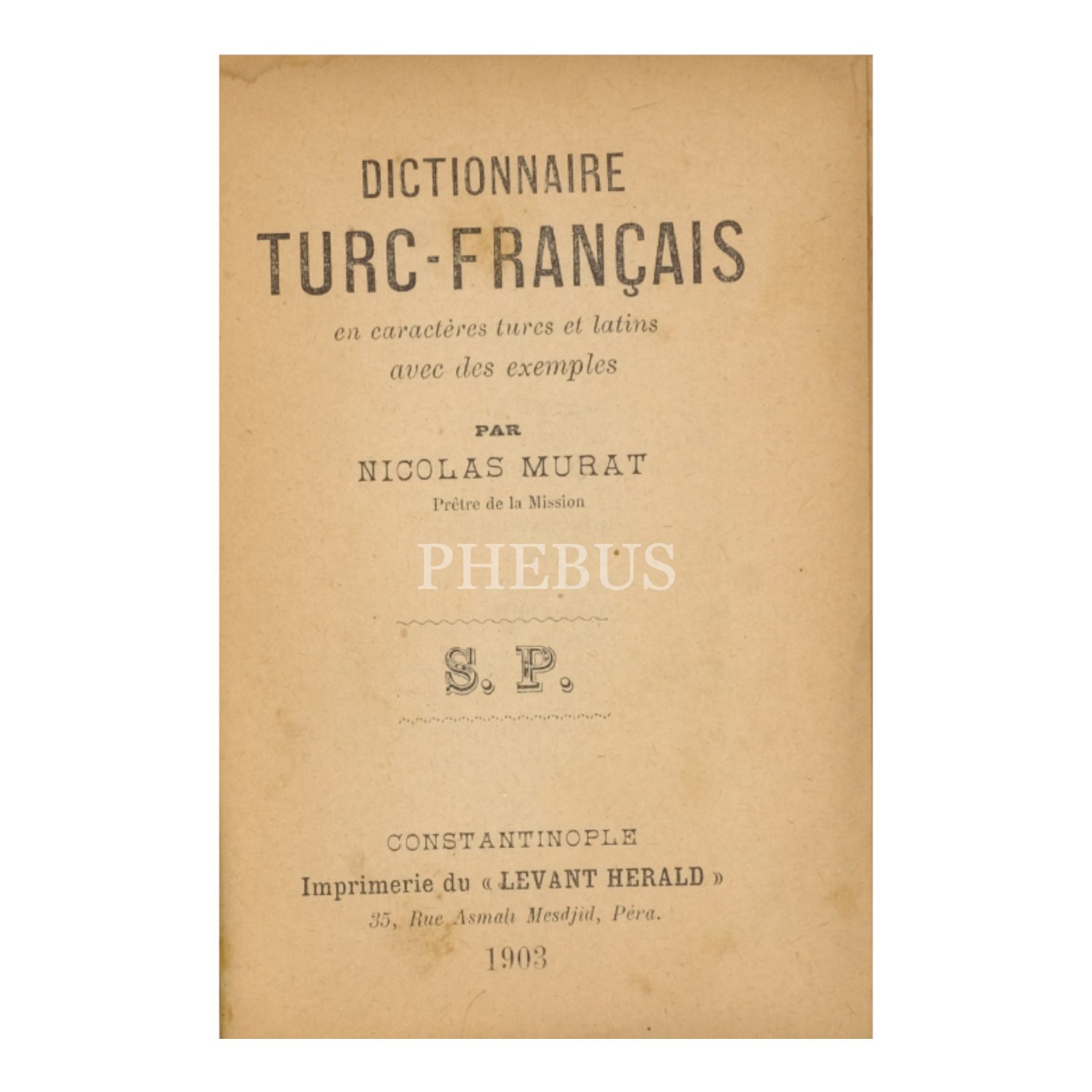 DICTIONAIRES TURC-FRANÇAIS, Nicolas Murat, 1903, Levant Herald, İstanbul, 318 sayfa, 11x14 cm...