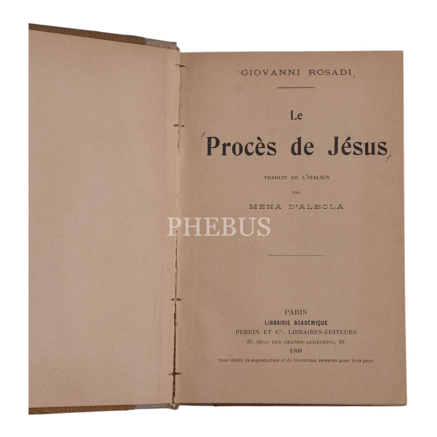 LE PROCES DE JESUS, Giovanni Rosadi, 1908, Librairie Academique (Paris), 328 sayfa, 12x18 cm...