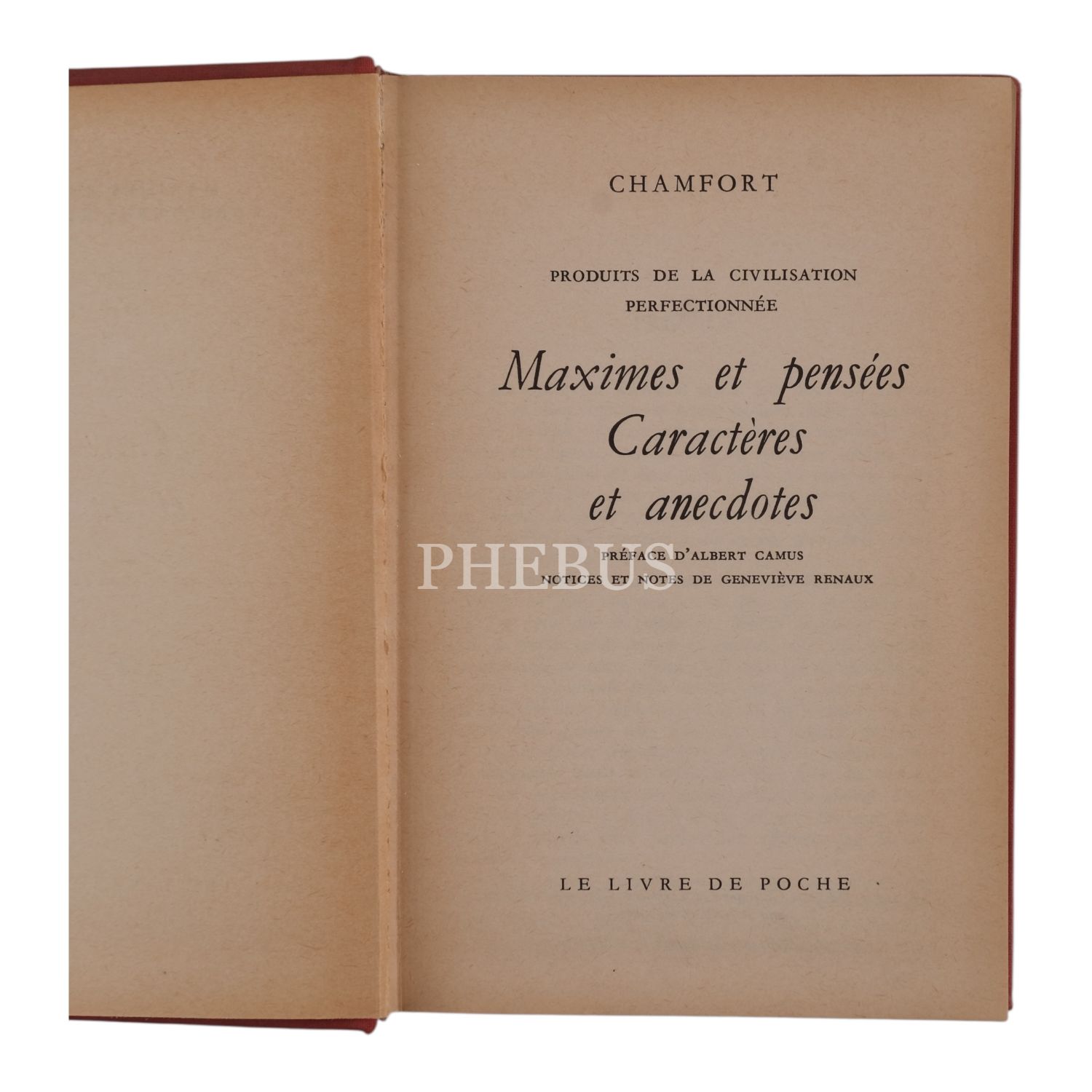 MAXIMES ET PENSEES CARACTERES ET ANECDOTES, Chamfort, 1970, Le Livre de Poche, 446 sayfa, 12x17 cm...
