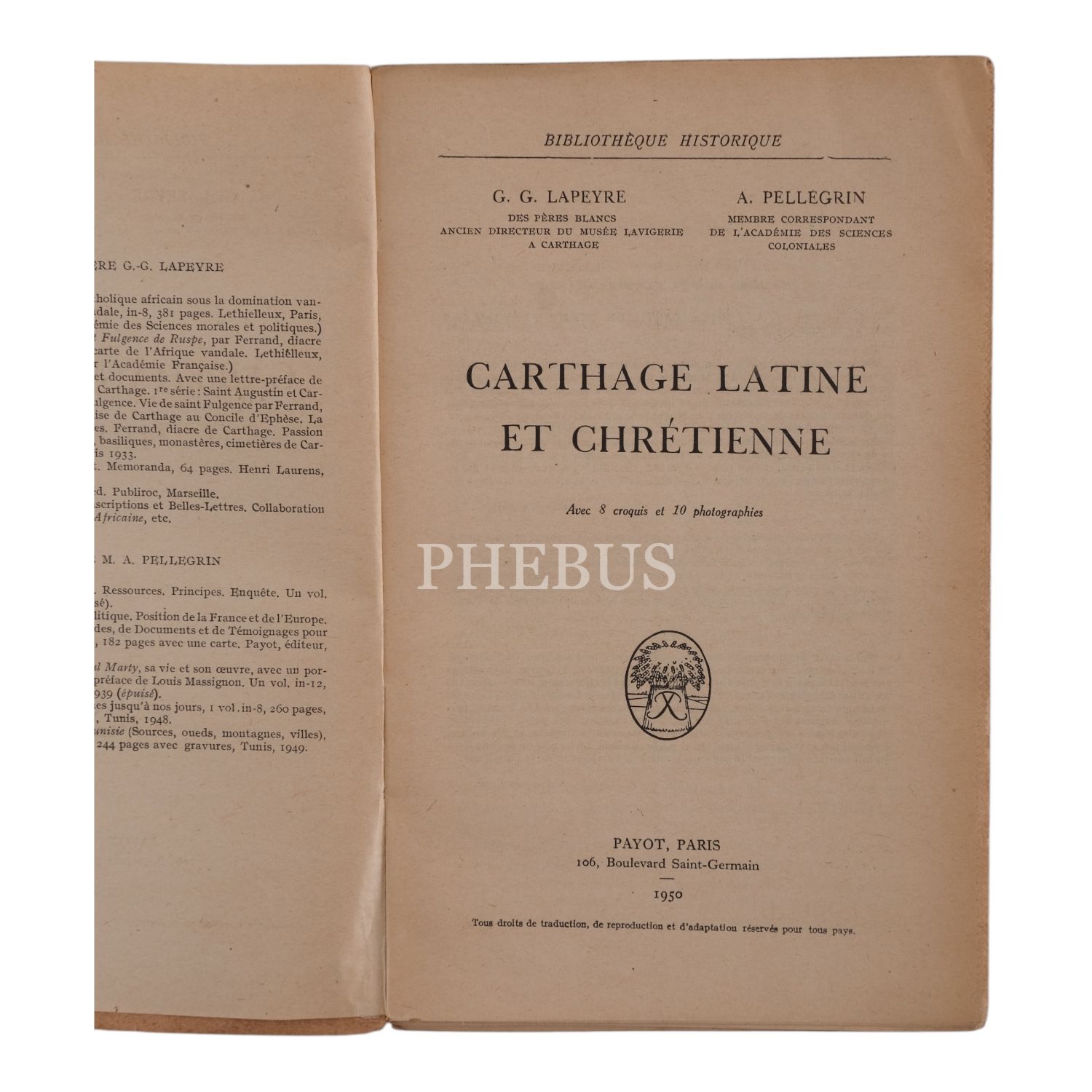 CARTHAGE LATINE ET CHRETIENNE, G. G. Lapeyre - A. Pellegrin, 1950, Payot (Paris), 264 sayfa, 14x23 cm...