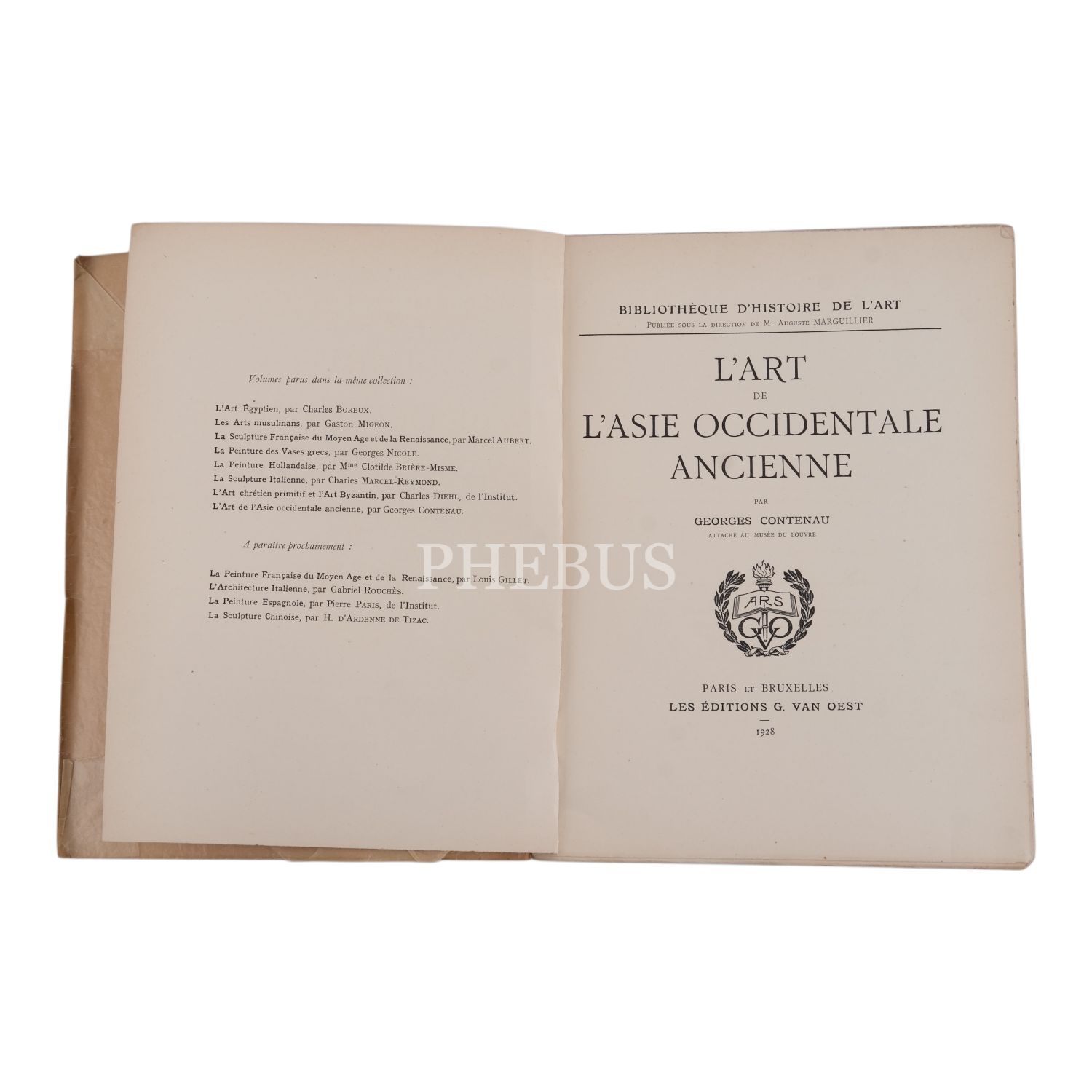 L´ART DE L´ASIE OCCIDENTALE ANCIENNE, Georges Contenau, 1928, Les Editions G. Van Oest (Paris), 59 sayfa+64 planş, 20x25 cm...