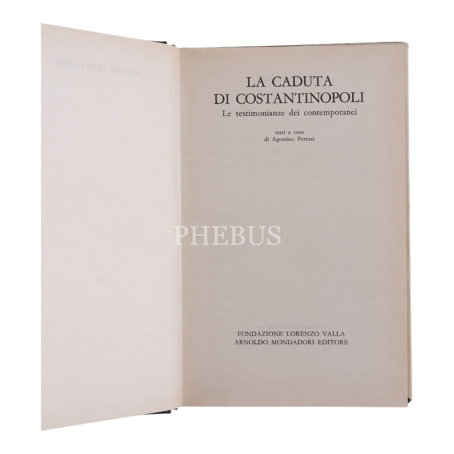 LA CADUTO DI CONSTANTINOPOLI (L´eco nel mondo), Agostino Pertusi, 1976, Fondanzione Lorenzo Valla, 566 sayfa, 13x20 cm...