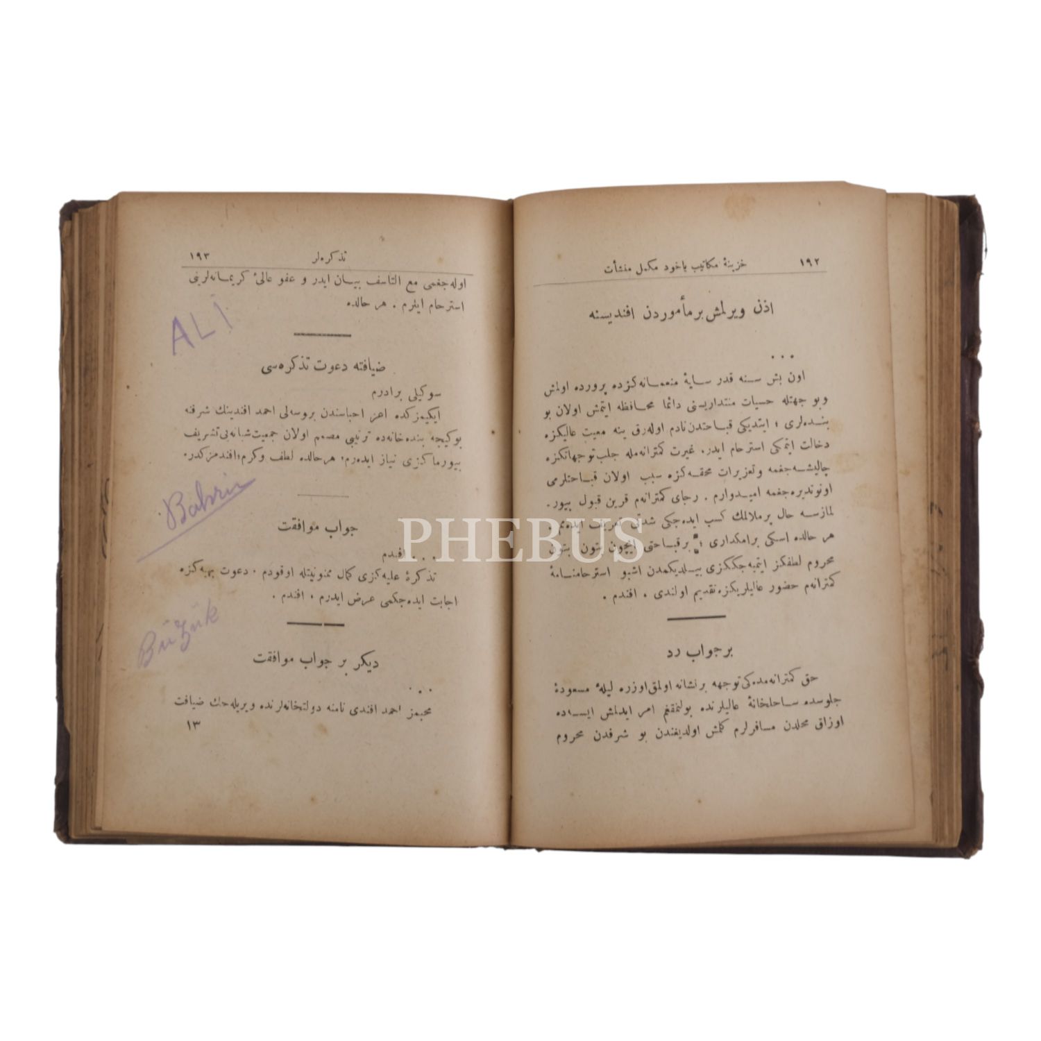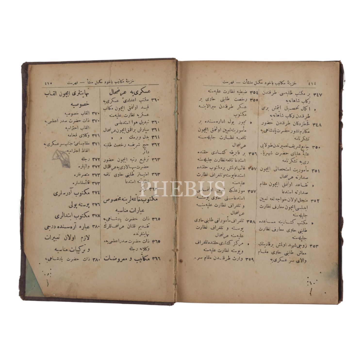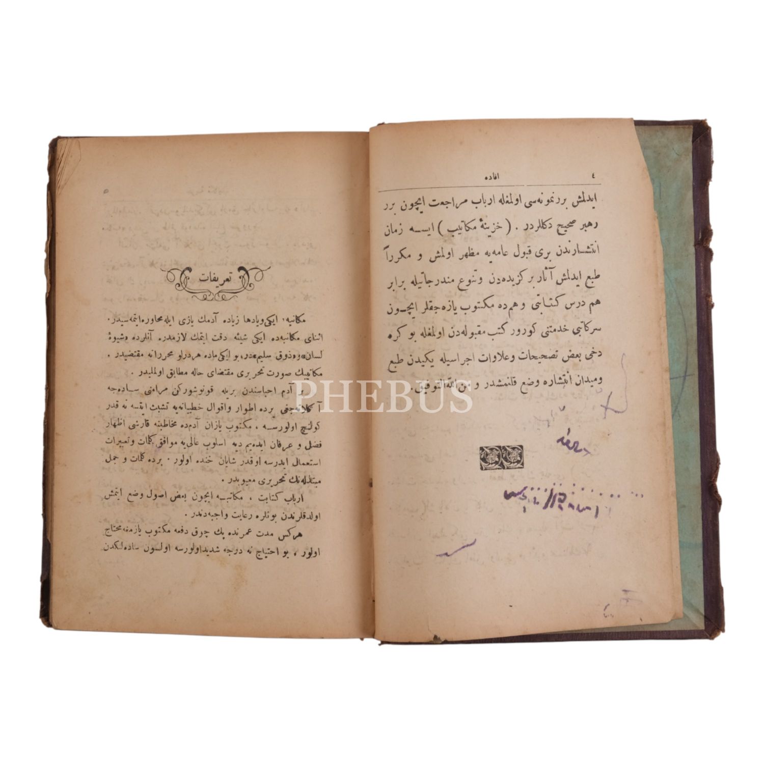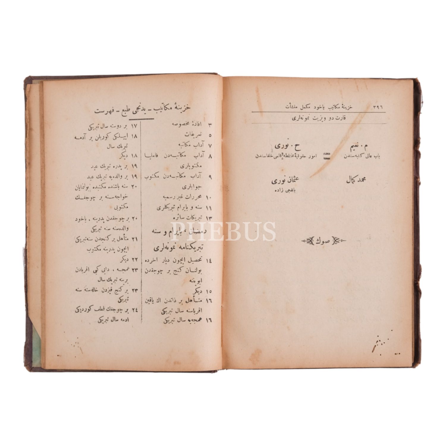 *Cildi yorgun ve kenarlardan küçük hasarlıdır. İçindekiler bölümün kopuk son yaprağında üstten yırtılma vardır. Fotoğrafları inceleyerek pey veriniz.