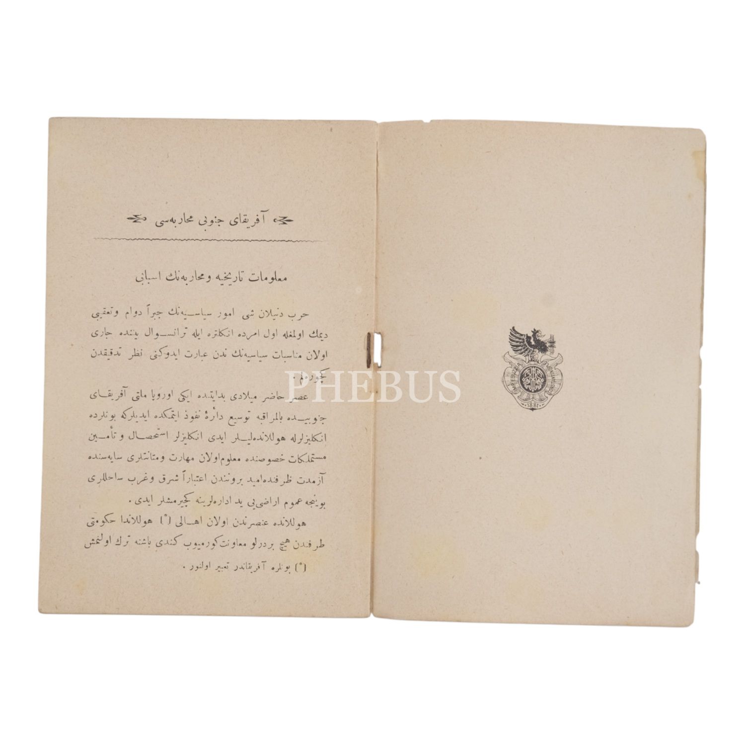AFRİKA-YI CENÛBÎ MUHAREBESİ, Mahmud Muhtar Paşa, 1317, Ebüzziya Matbaası, 96 sayfa, 12x18 cm...
