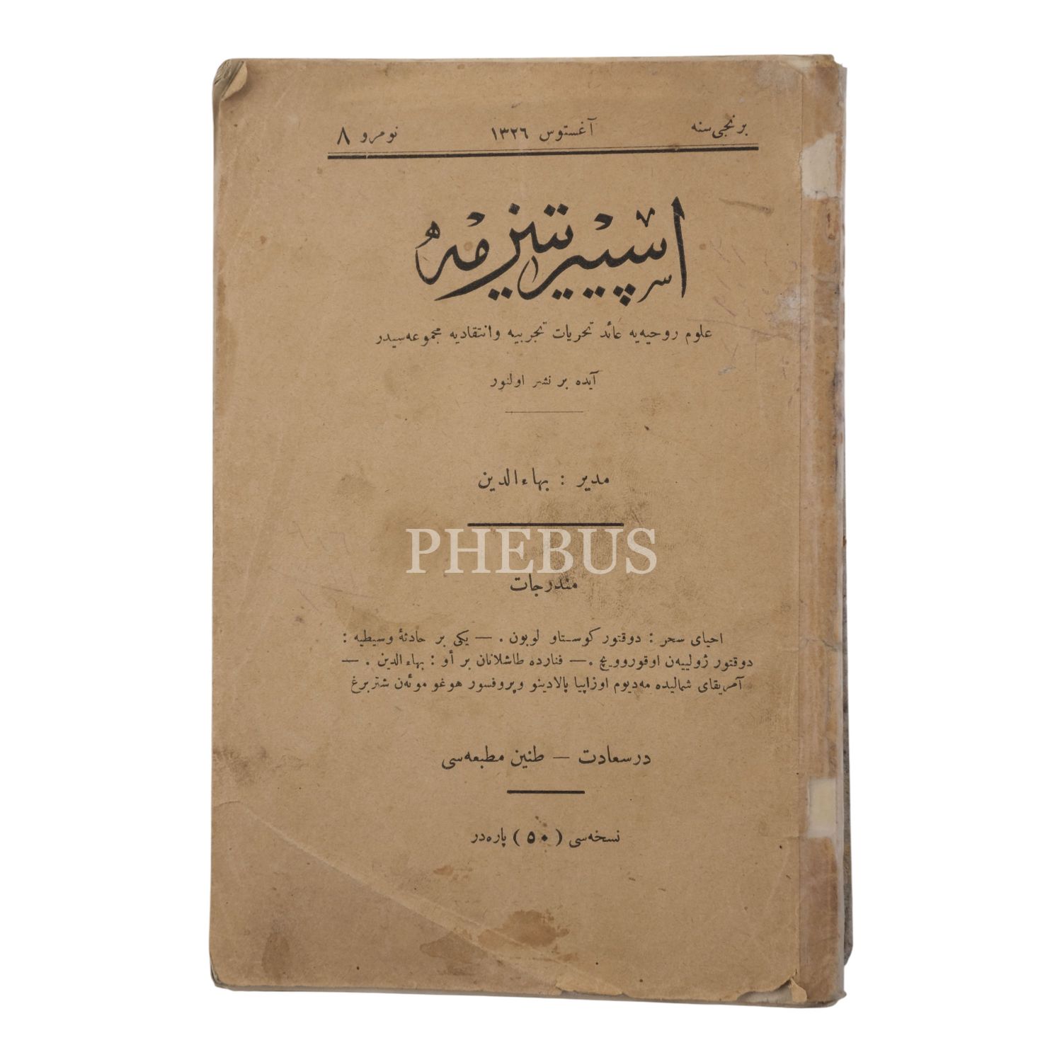 İSPİRİTİZMA, 8. sayı, 1326, Tanin Matbaası, 226-256. sayfalar, 15x21 cm...