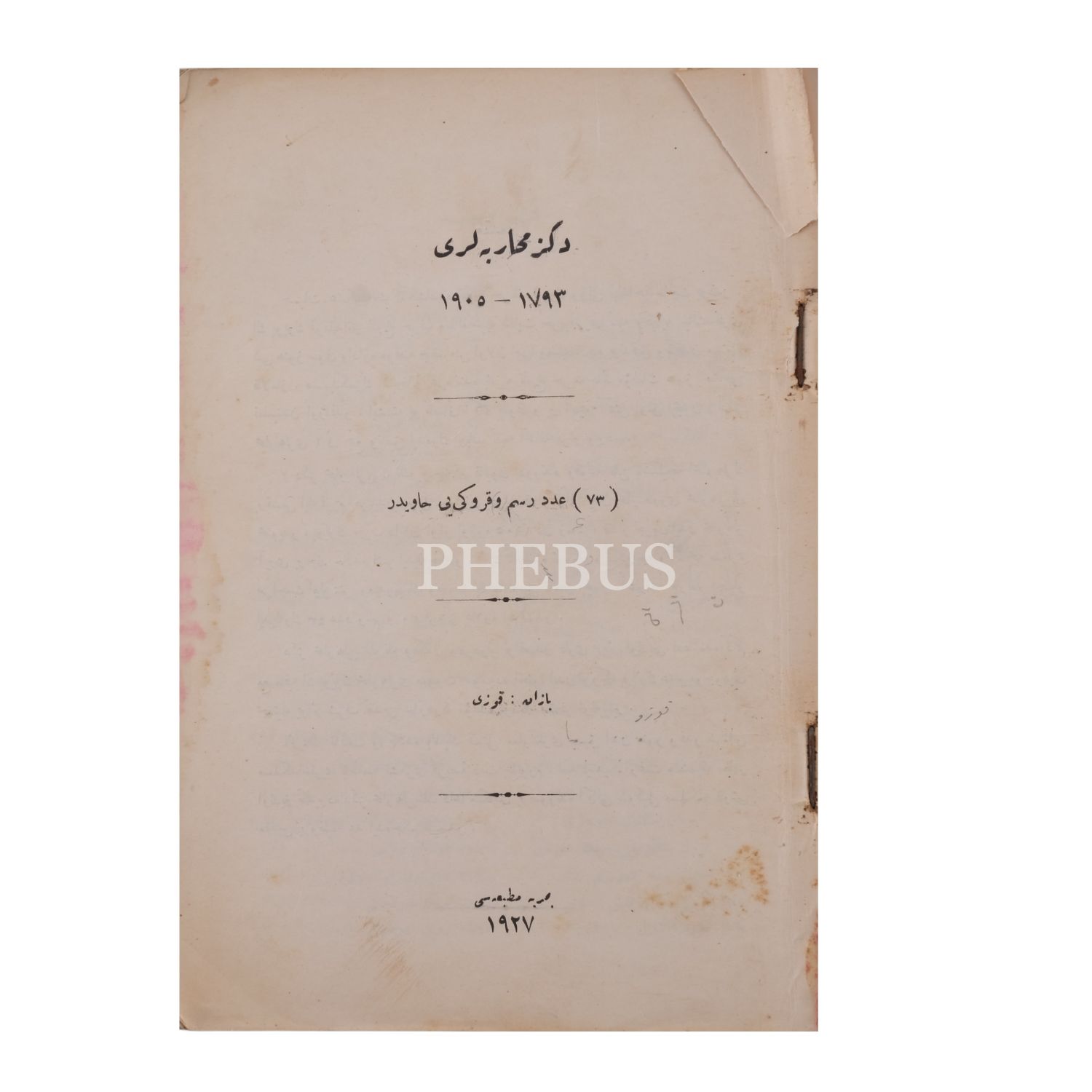 DENİZ MUHÂREBELERİ (1793-1905), Fevzi, Bahriye Matbaası, 1927, 296 s., 17x24 cm...