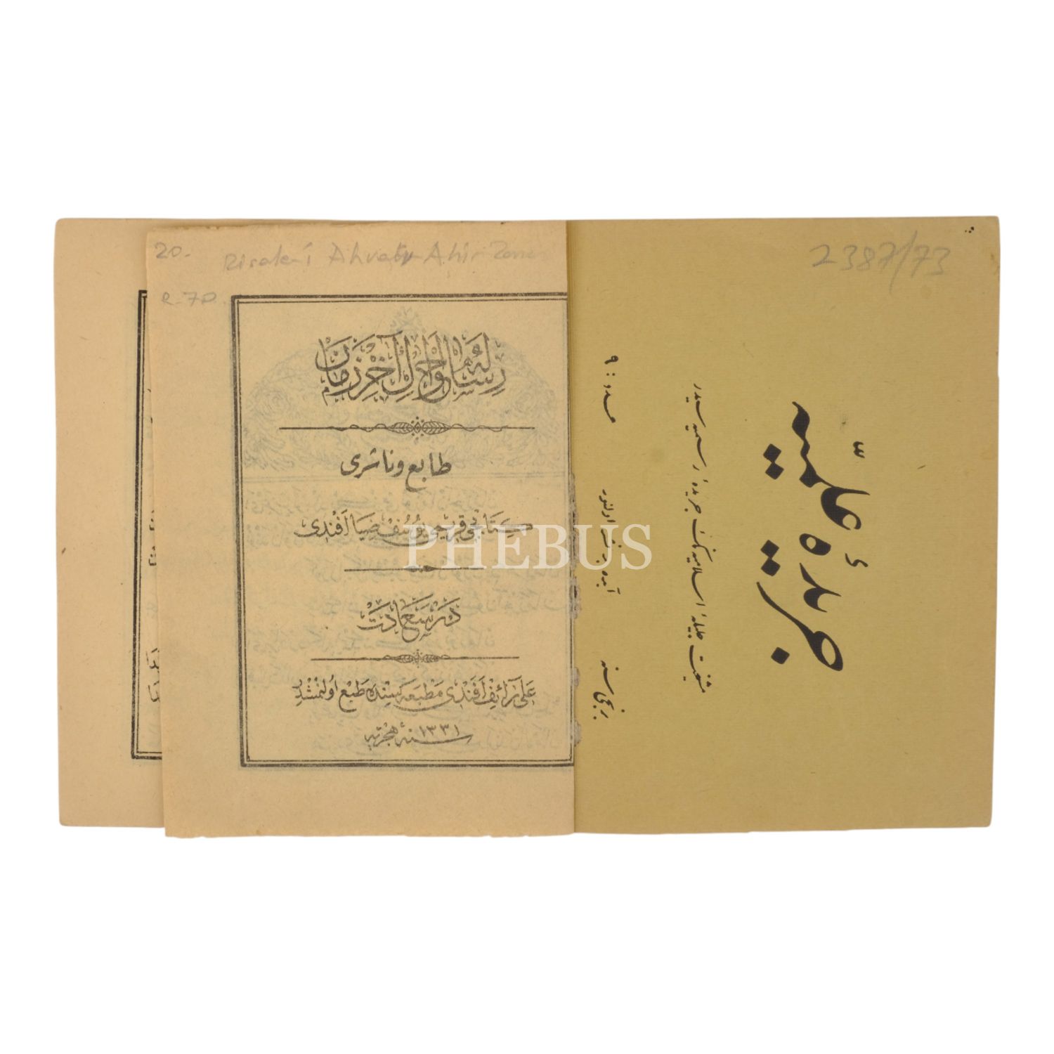 RİSÂLE-İ AHVÂL-İ ÂHİR ZAMAN, Tonyalı Ahmed Efendi, 1331, Ali Raif Efendi Matbaası, 32 sayfa, 12x16 cm...