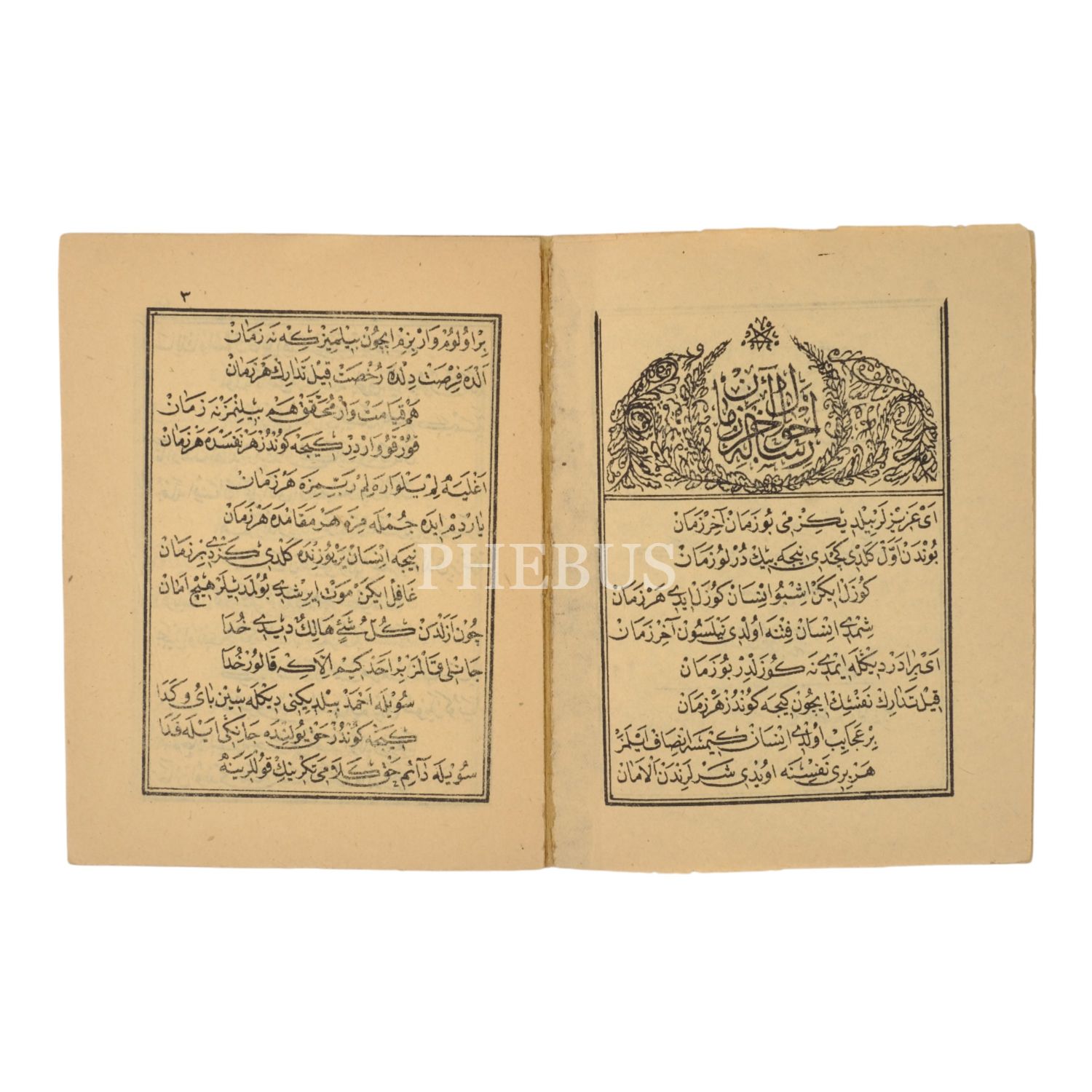 Osmanlı´nın son devrinde büyük rağbet gören eserlerden olan kısa mesnevînin Kırımlı Yusuf Ziya tarafından hazırlanan taş baskı nüshası.